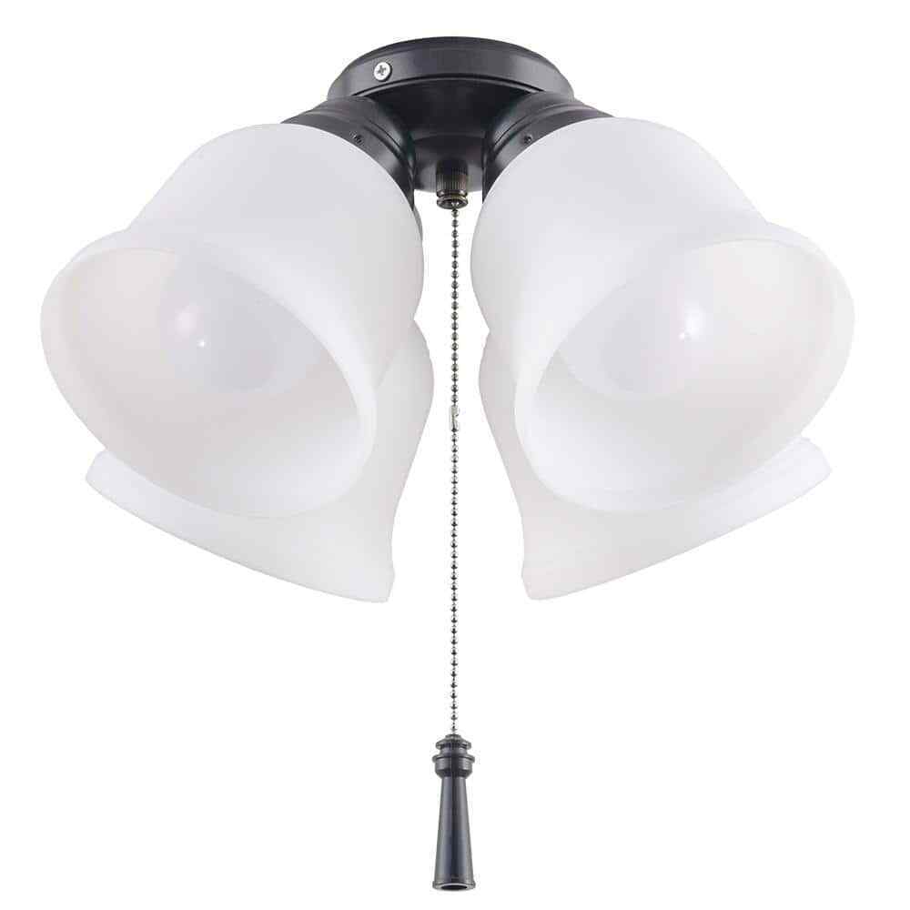 Brighten up your living space with the Hampton Bay Universal Ceiling Fan Light Kit. This ceiling fan light kit is wet rated for outdoor use, but it can also be installed indoors to add light to any room. The universal ceiling fan light kit includes shatter resistant plastic light shades and (4) LED bulbs.- Compatible with indoor and outdoor fans