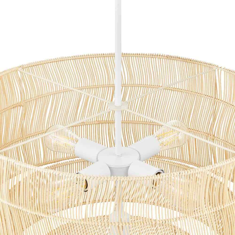 This tan natural 5 light pendant is the perfect addition to any boho-inspired dining room. The rattan design adds a rustic and natural touch, while the 5 lights provide plenty of illumination for any meal or gathering. Whether you're hosting a dinner party or just enjoying a quiet dinner with your family, this pendant will provide the perfect ambiance. Its neutral color allows it to blend seamlessly with a variety of decor styles, making it a versatile choice for any home.- Natural finished rattan 5 light pendant