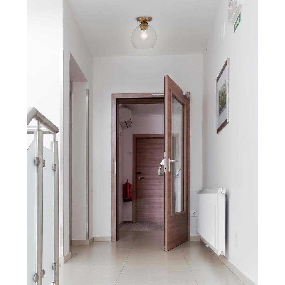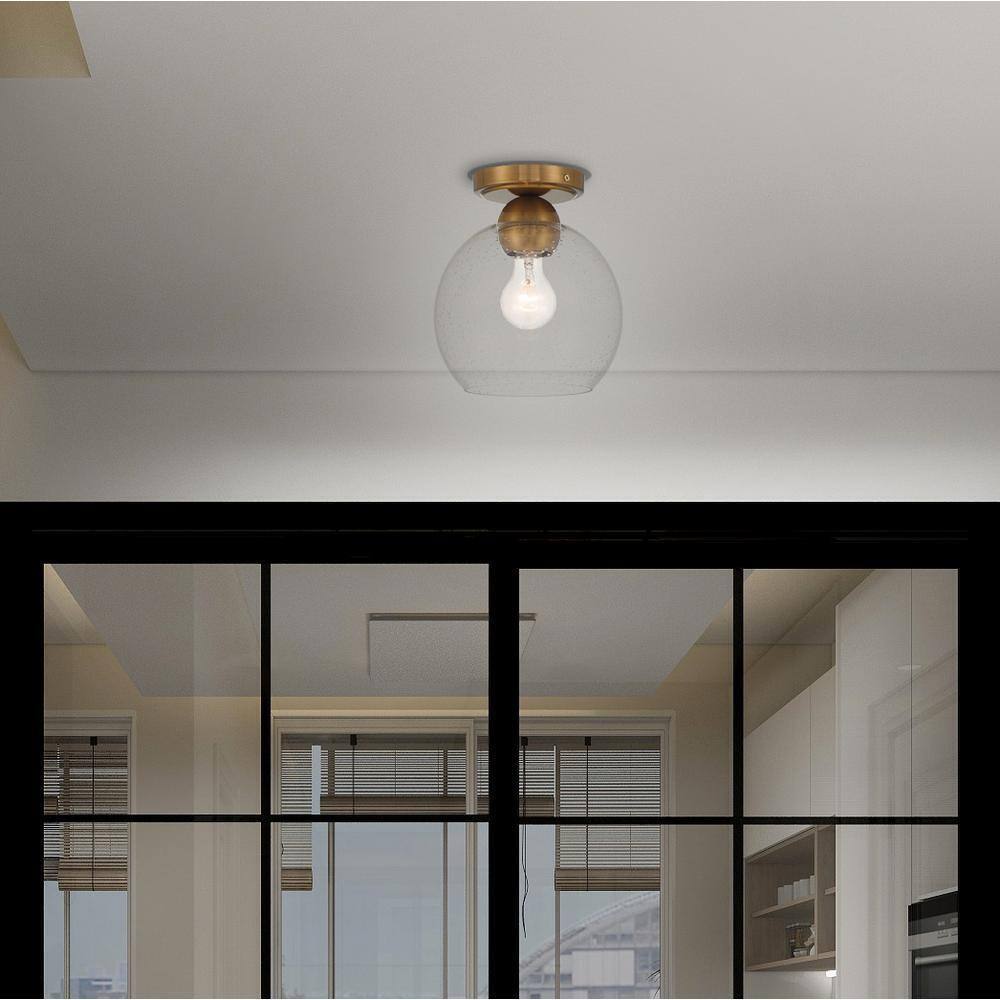 Cast a warm and welcoming glow anywhere in your house with the simple and elegant design of Grace. The Clear seeded glass shade provides the right amount detail, with keeping the clean and contemporary style. This collection includes chandeliers, pendants, flush mounts and vanities.- Gold finish