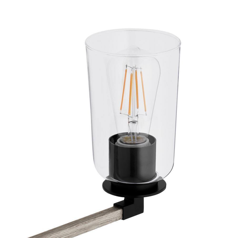 Add new lighting and style to your space with the Home Decorators Collection Walsh Vanity Light. It features matte black and bleached oak finishes with clear glass shades, perfect for rustic styled homes. This fixture is easy to install yourself with the included hardware and it uses four light bulbs (not included).- Matte black with bleached oak accents finish