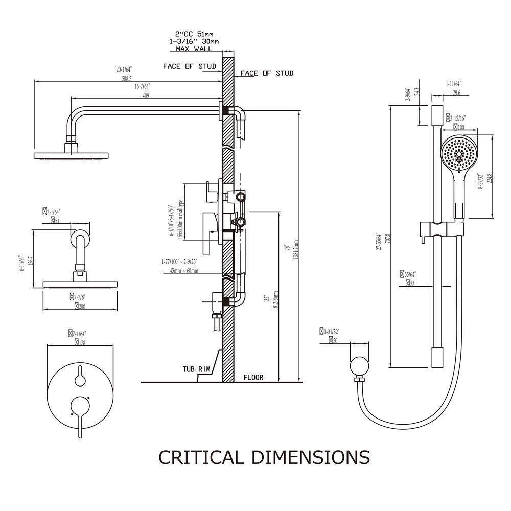 - Includes: 8 in. 360° rotatable square rain shower head, 3.7 in. handheld round shower head, adjustable handheld shower holder, 2-handles, anti-scald brass valve with rough-in, all mounting hardware and supply lines