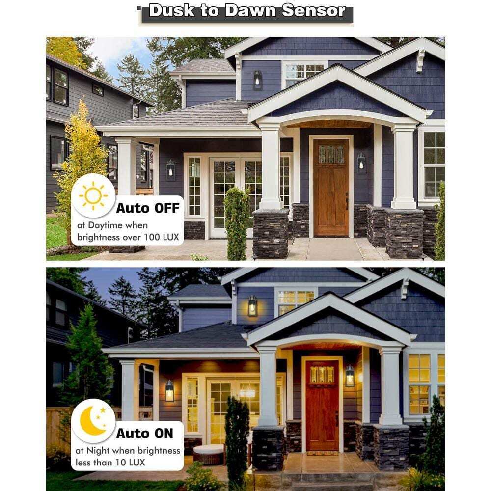 Built-in high sensitivity IC sensor, our outdoor wall sconce can sensitively detect the brightness of surroundings by using a built-in photocell sensor, which automatically turns on at dusk and off at dawn. No more manual on/off switch, convenient and hands-free in daily use. Make your purchase today to begin your journey to a whole new lighting experience.- Motion sensor: the wall lantern with motion sensor, sensing angle of 140° with 40 ft. sensing range