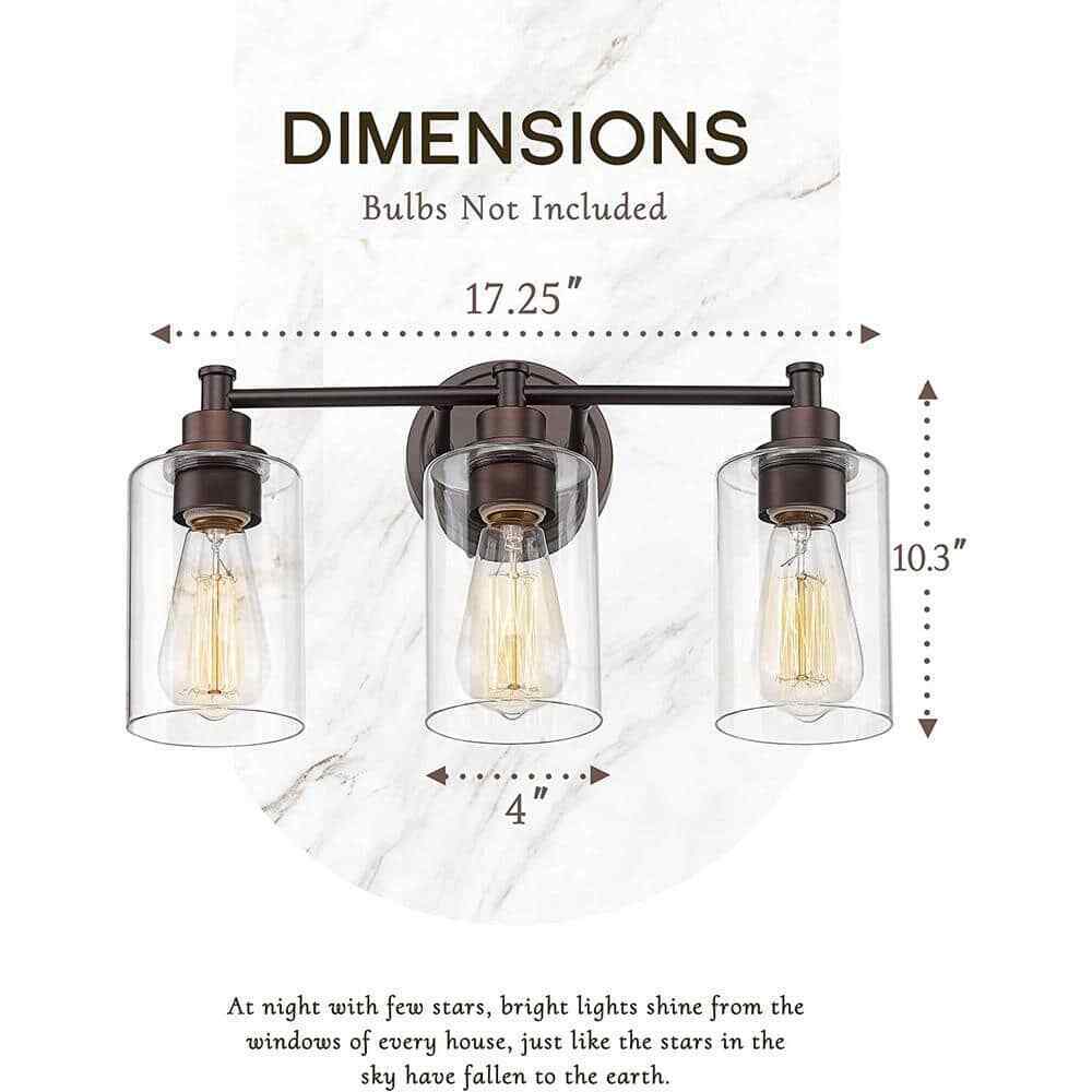 Built in sturdy metal lamp body with oil rubbed bronze finish and clear glass shades, this bathroom vanity light will bring more exquisite and luxurious for your home lighting. It is time to breathe new life into the mundane every day with a refreshed lighting design. Make your purchase today to begin your journey to a whole new lighting experience.- Support 3 x 60-Watt bulb (bulbs not included)