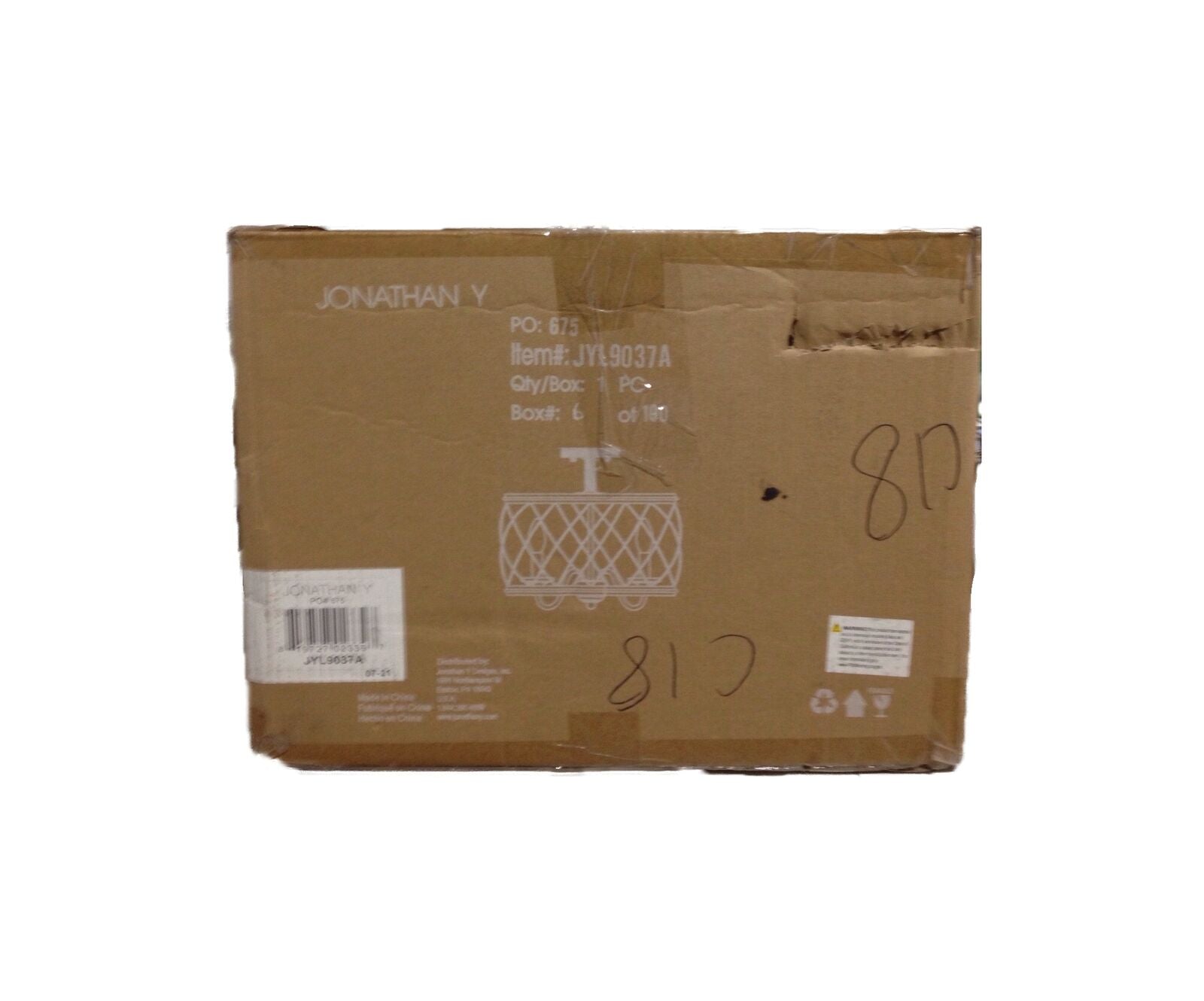 Surrounded by a drum of golden iron, three chandelier bulbs emanate a warm glow, creating a sense of "welcome" suitable to any room in the home. Industrial hardware finds restoration with a fresh finish, creating a look that is rugged but feminine. Easy to assemble, maintain and clean; this fixture is as functional as it is lovely.- Eco-friendly 4-Watt LED bulb included