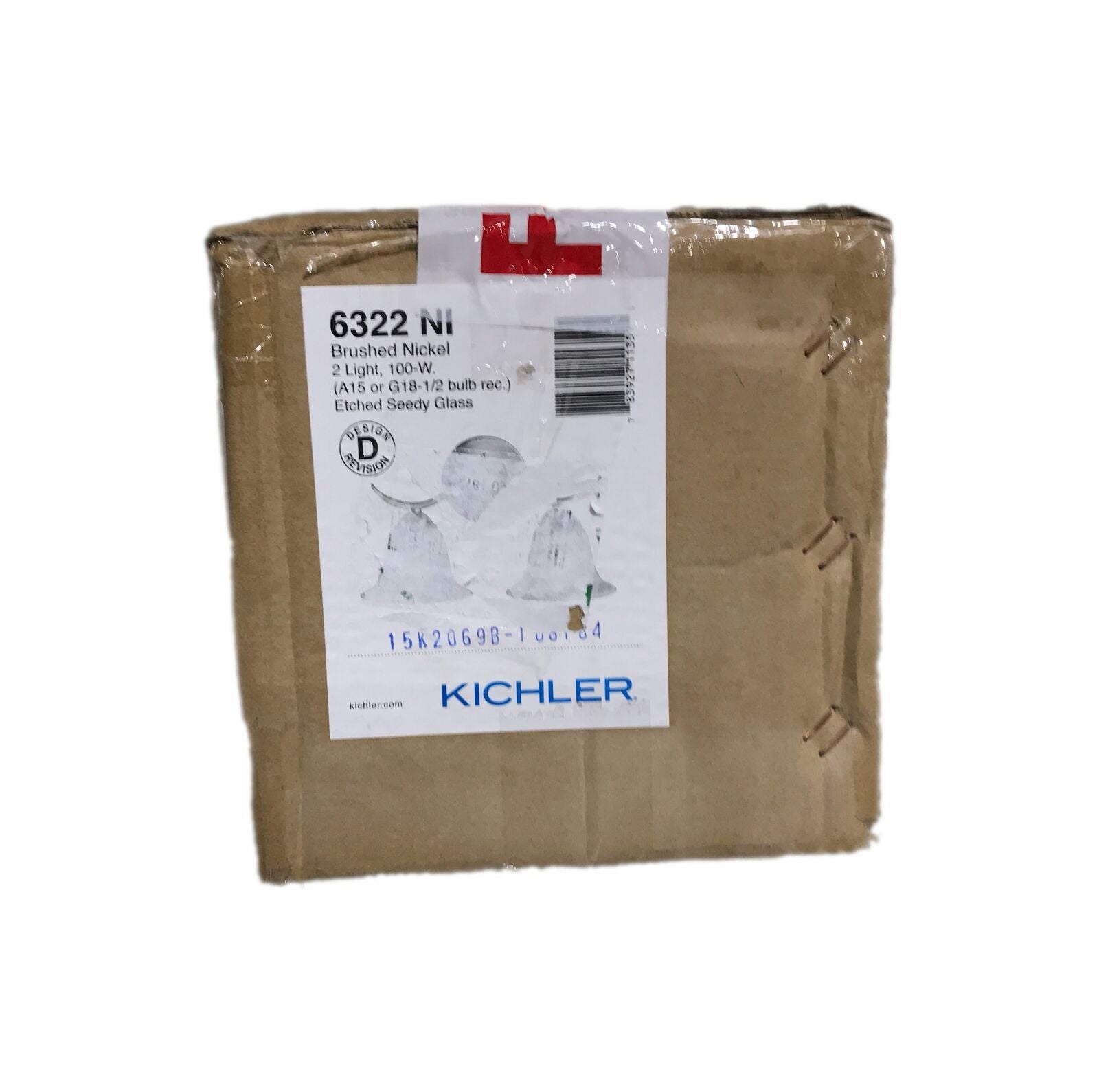 Brighten up your space with the KICHLER Dover 2-Light 14 in. Brushed Nickel Vanity Light. It features a fluid design to complement your bath decor. The seedy etched glass of the vanity light emits a warm glow to create a soothing ambiance. The brushed nickel finish of the light ensures resistance against corrosion. This vanity light allows for customizations of the glass shade. Face the lamp up to the ceiling for soft ambient lighting or face it down to highlight the mirror.- Bell-shaped shades offer an enhanced visual appeal