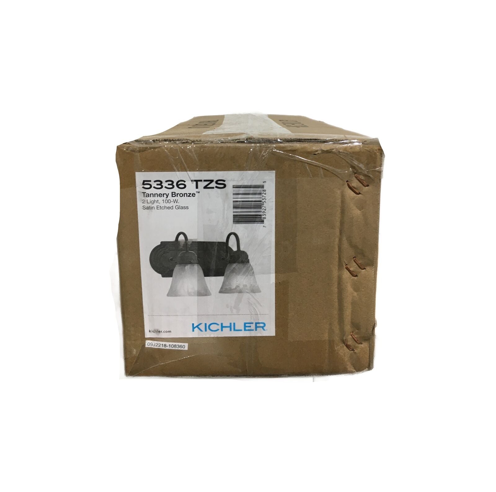 The KICHLER 12.25 in. 2-Light Tannery Bronze Vanity Light provides ample illumination for your bath space. It features satin-etched glass diffusers that offer soft lighting. The vanity light has a robust steel backplate with a vintage tannery bronze finish that complements any bath decor. It is suitable to be mounted as an up light or a downlight.- Sturdy fixture can be mounted as a downlight or an up light