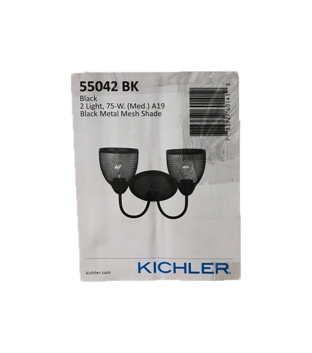 The KICHLER Voclain 16 in. 2-Light Black Vanity Light with Mesh Shade has a contemporary design that makes it an ideal addition to your bathroom. This vanity light lets you hang the glass shade up or down depending on your usage: simply turn the shade upside for a soft ambient light appeal or turn it down to highlight the mirror. It has a backplate and 3 horizontal arms that are made of steel, ensuring long-term use. This vanity light is suitable for use in damp locations.- Steel construction ensures lasting use