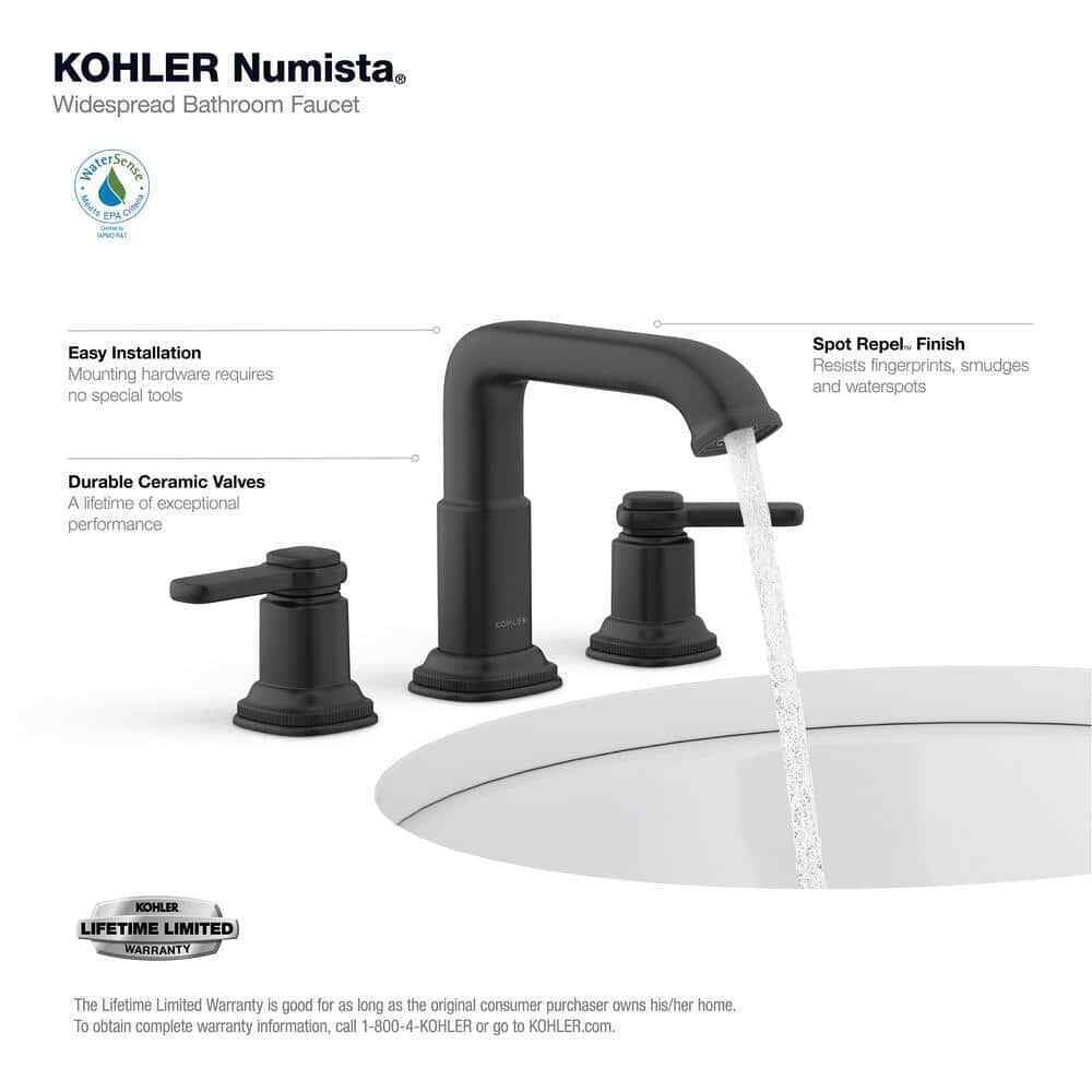 With intricate detailing and soft square edges, the Numista faucet puts a warm and inviting twist on the industrial modern design aesthetic. And Numista faucets carry the WaterSense label, using at least 45% less water than 2.2 GPM faucets, saving you money without sacrificing performance.- 2-lever handles offer separate control of hot and cold water