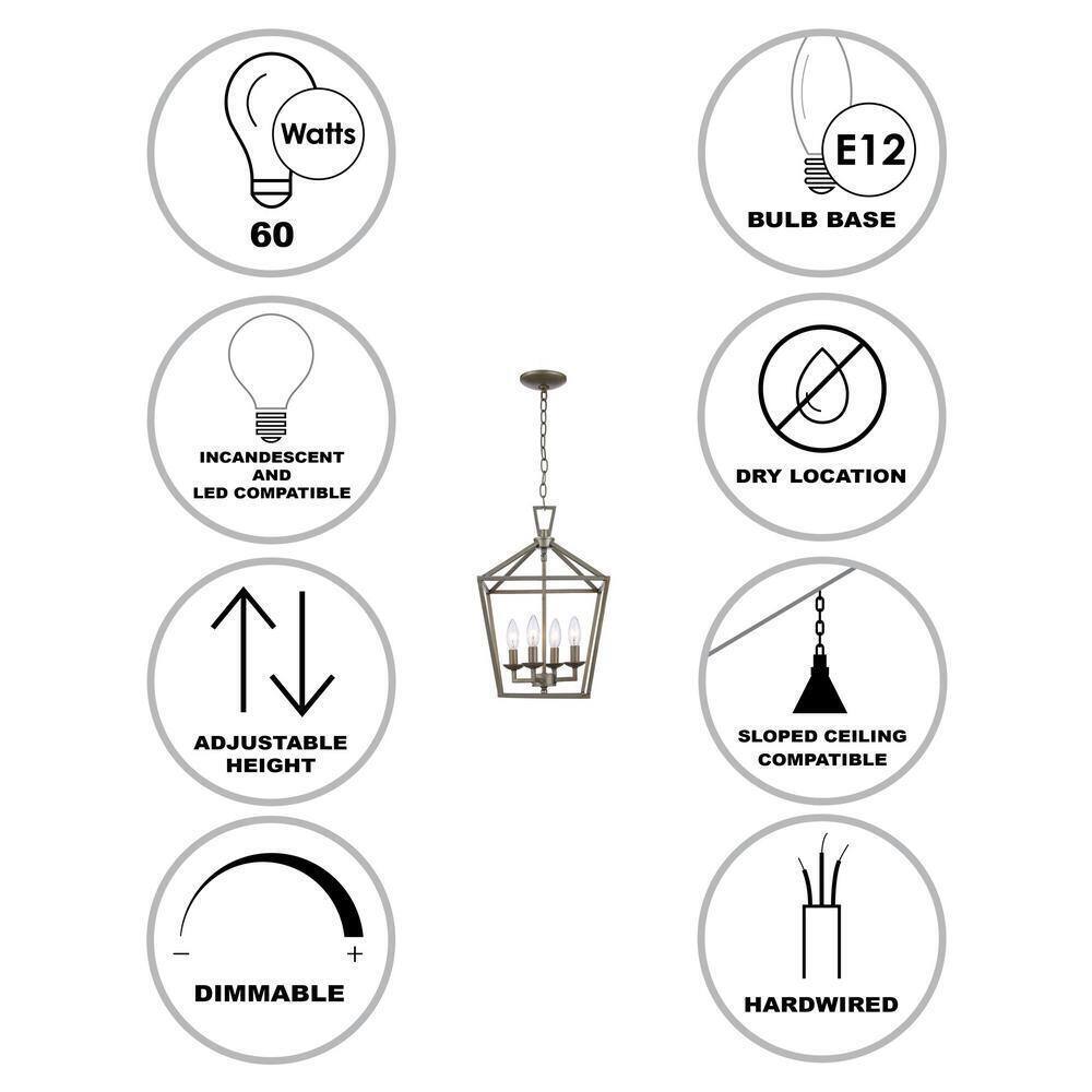 - Uses (4) 60-watt candelabra base bulbs, not included