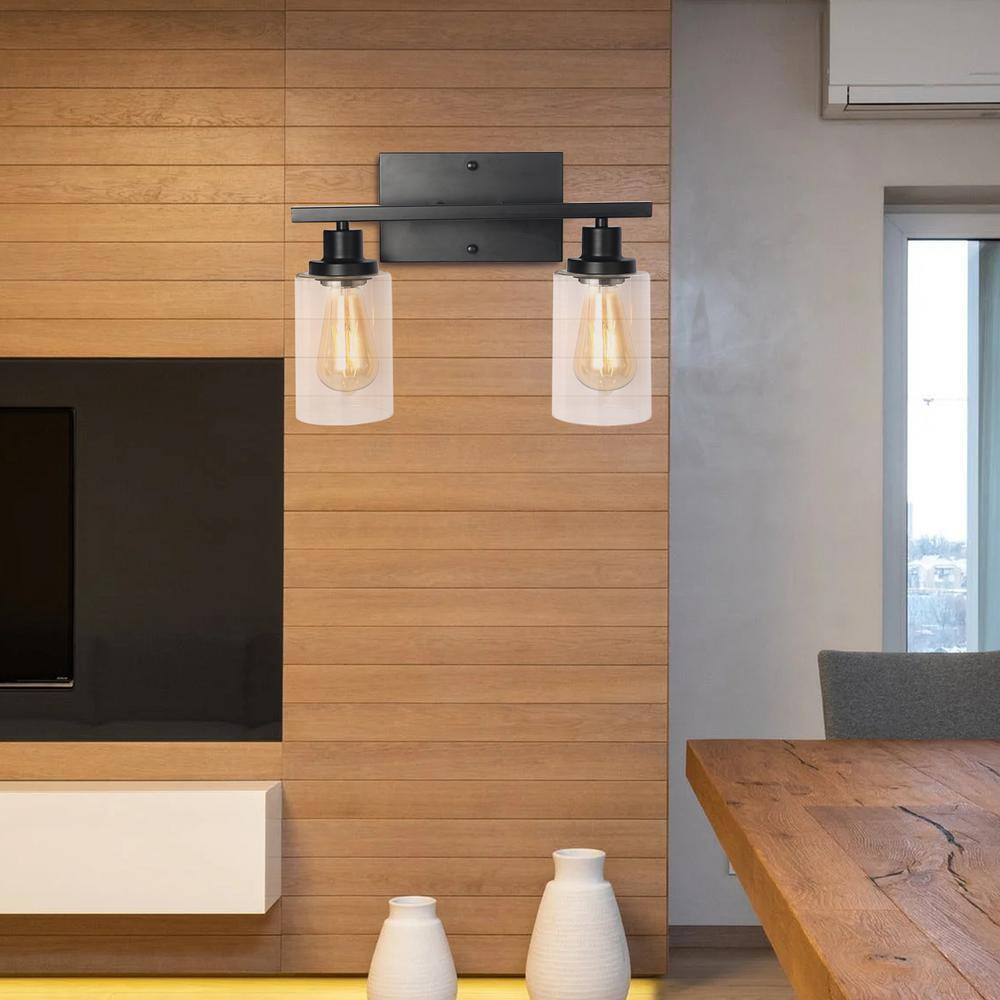 This matte black vanity fixture is made of high quality baking varnish metal, anti-rust and won't fade. The cylindrical thick clear glass shades softly diffuses the light, which add an exquisite luxury and super modern aesthetic to your house. The Industrial bathroom light fixtures can be compatible with E26 base bulbs. You can choose different style bulbs and color temperatures to create multiple atmospheres to your house. Practical design fits many spaces, Ideal as bathroom light fixtures over mirror, living room wall sconces lighting, bedroom wall lights, kitchen light fixtures or porch wall mount and so on. The gorgeous wall lighting is highly suited for any decoration style, such as modern, contemporary, vintage, minimalist, and so on. It is the perfect choice for your home lighting.- E26 base bulbs (bulbs are not included)
