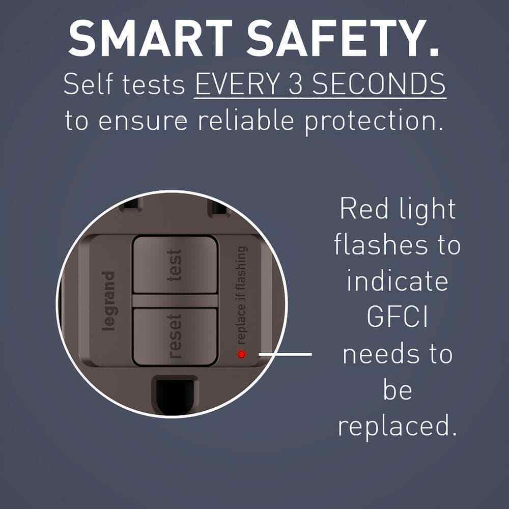 The radiant collection is a step up from the standard with simple, classic options in wiring devices, home automation controls and screwless wall plates that complement today's homes. The self-test GFCI conducts an automatic test every 3-seconds, ensuring it's always ready to protect. If the device fails the test, the indicator light flashes to signal that the GFCI should be replaced. It also has our proven SafeLock Protection feature: if critical components are damaged and protection is lost, power to the receptacle is disconnected. This GFCI outlet also features tamper-resistant outlets, now with black invisi-shutters for an invisible effect preferred by end users. Designed to complement your decor, radiant layers on the style with tasteful finish options to coordinate with any decor.- Conducts an automatic test every 3-seconds, ensuring it's always ready to protect - if the device fails the test, the trip indicator light (red LED) flashes to signal that the GFCI should be replaced
