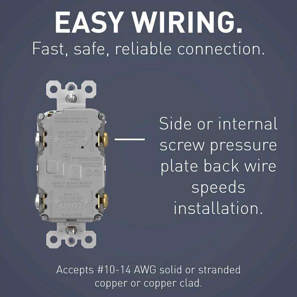 - Prevents line-load reversal miswire: no power to the face or downstream receptacles if wired incorrectly