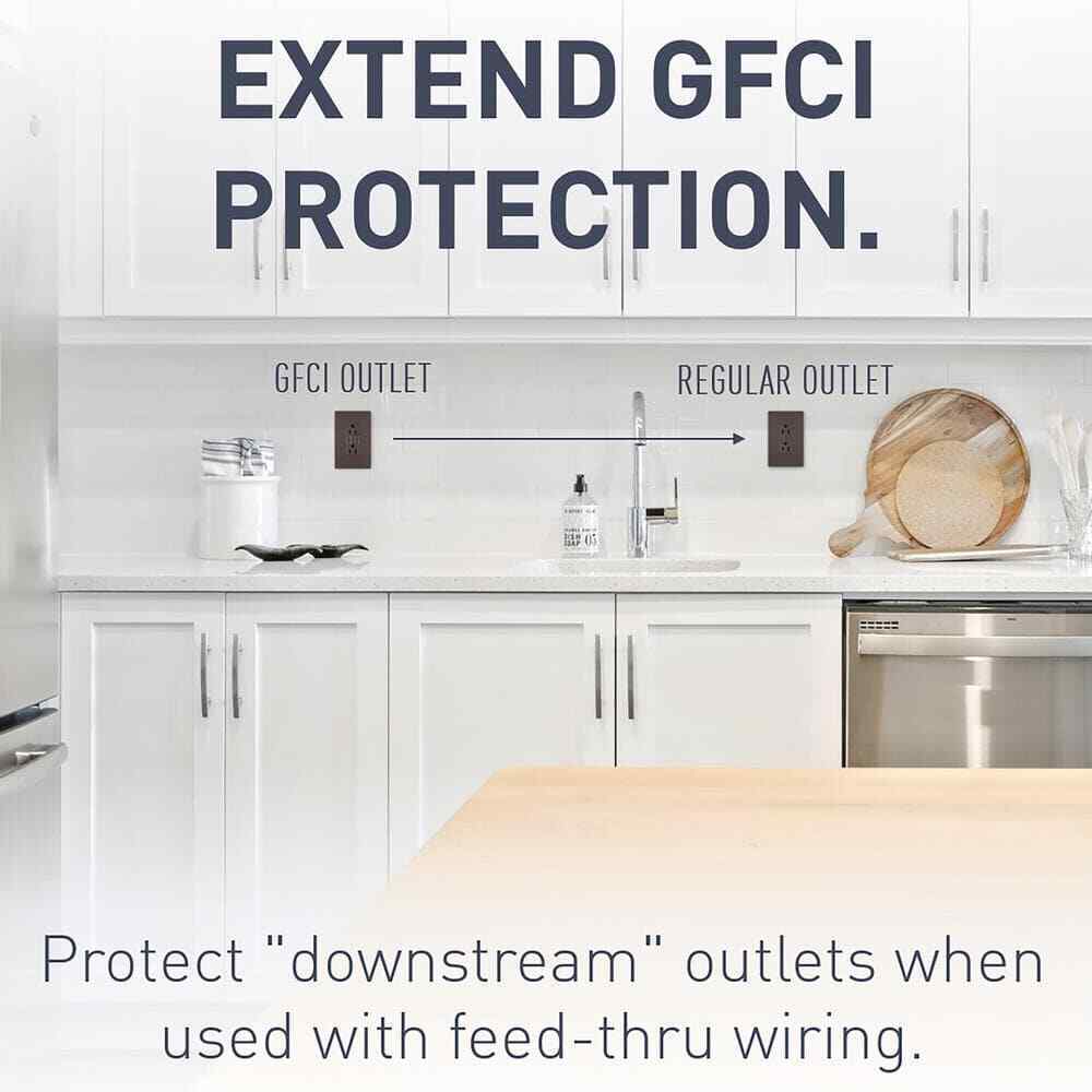 - Feed-thru wiring configuration allows GFCI to protect downstream receptacles