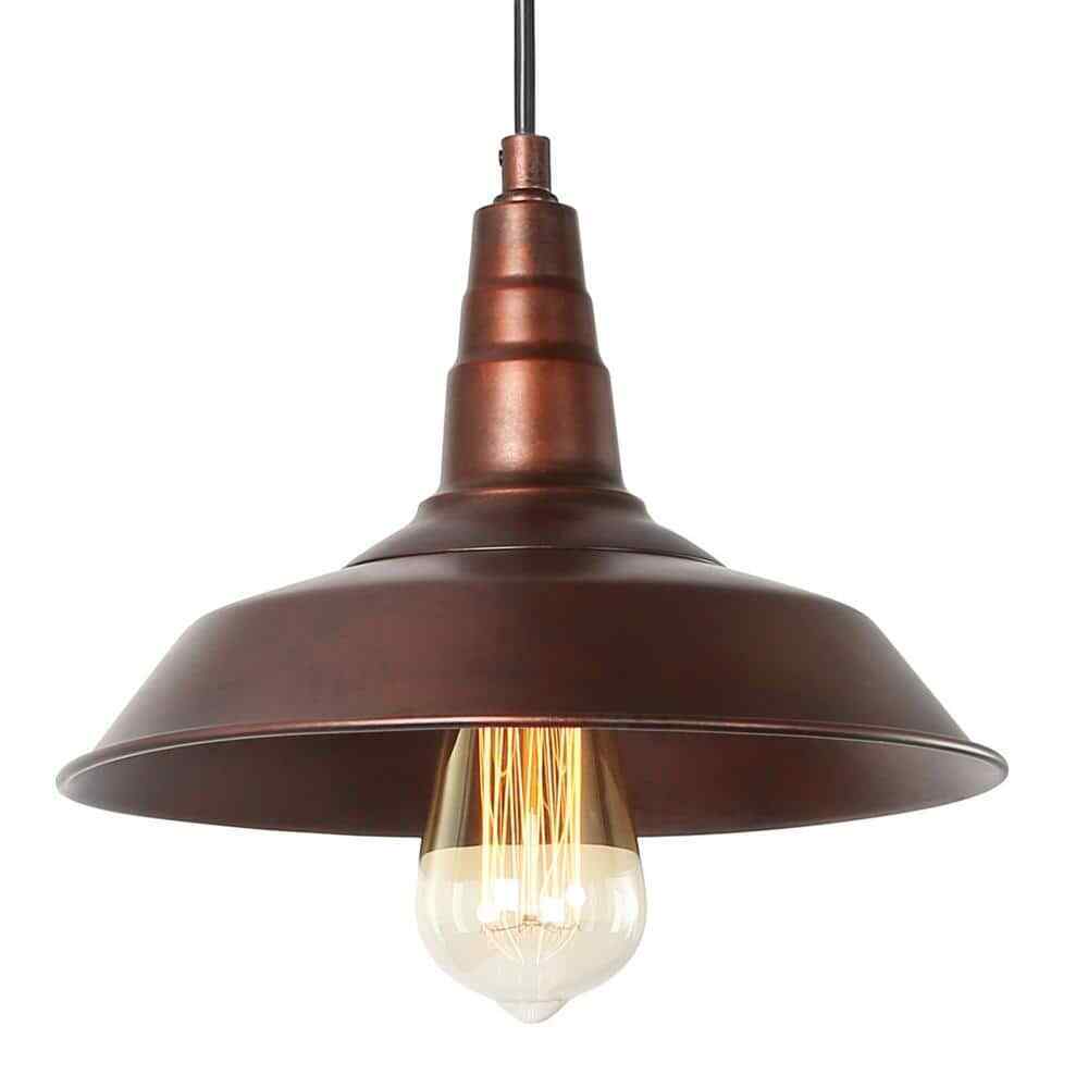 With its rust bronze finish and industrial silhouette, the 1-Light Bronze Rustic Industrial Chandelier Barn Light Pendant Ceiling Light with Metal Shade emits a cool, practical presence, like those found in large warehouses, artists' lofts or retro-style barbershops. This modern industrial chandelier/pendant features a durable transitional-style metal shade, offers a clean, casual look and general all-over room lighting. Use it anywhere from over the kitchen table or bar to above a sitting area in the living room or in a workshop, game room or studio. Great for residential and commercial applications.- Durability: crafted from metal construction that provide the extra durability and strength
