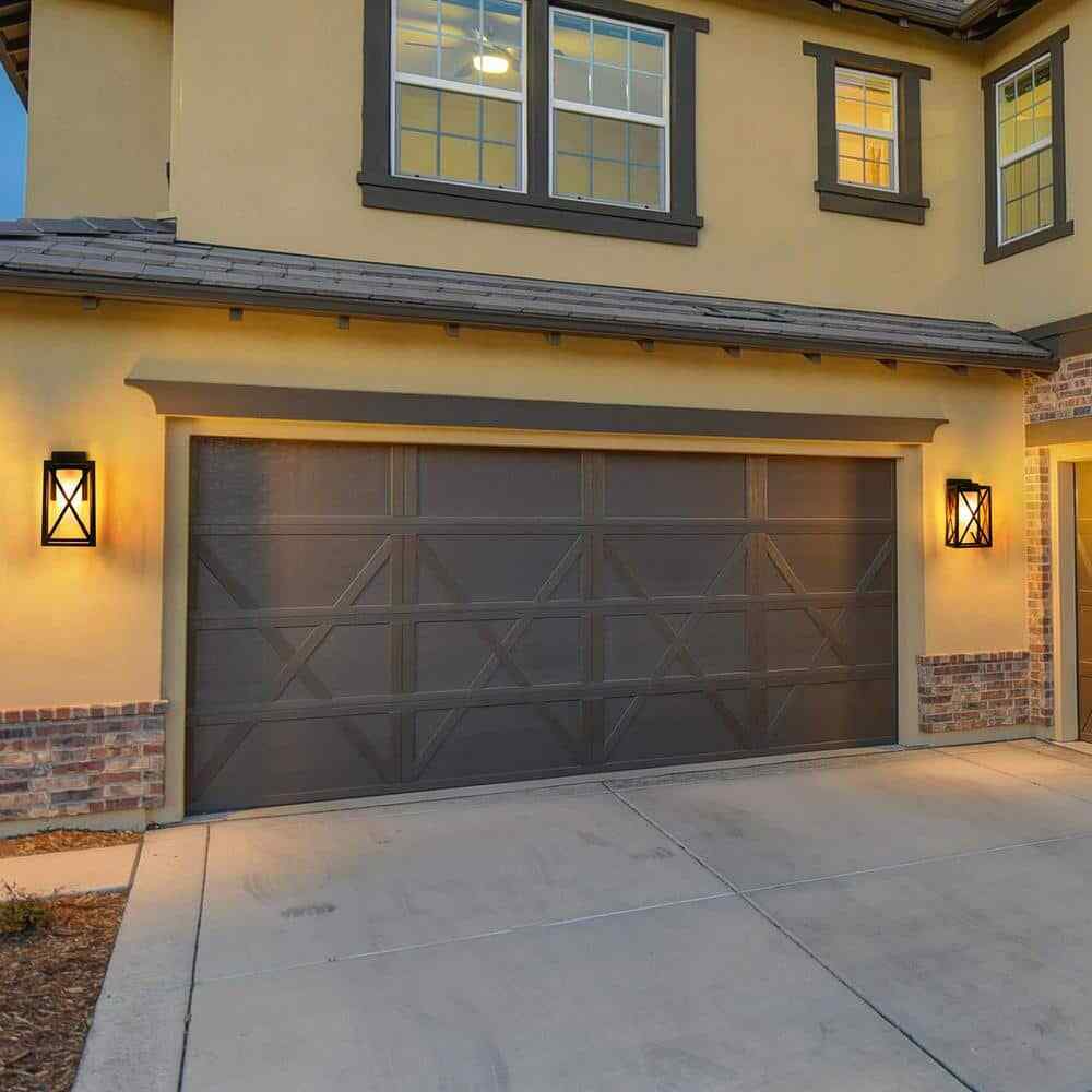 Give your space a fresh update with this LNC 1-light outdoor wall sconce. Great for a porch, entryway, patio, garden and more, the lantern style, frosted glass shade and matte black X-shape create a stylish look. This dimmable fixture comes with all mounting hardware for a convenient installation. Metal construction with weather resistance ensures lasting use.- Matte black X-shape metal cage frame creates farmhouse rustic flair