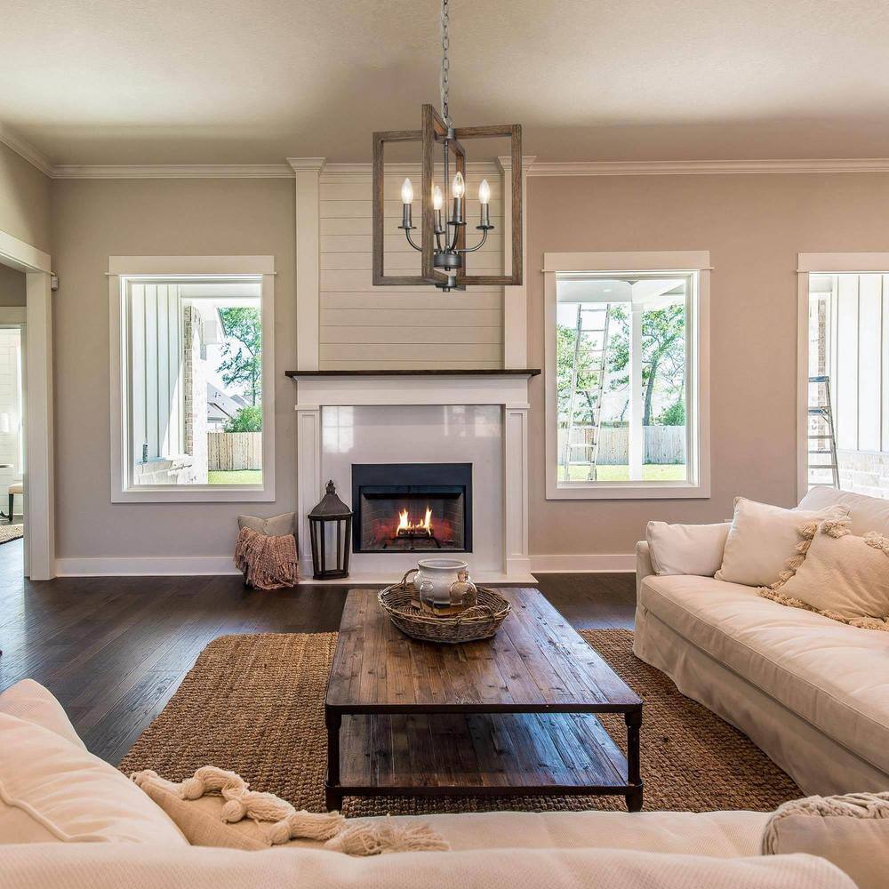 Time to upgrade your home decor with this 4-Light Brown Caged Chandelier Hanging Ceiling Light by LNC! Crafted of sturdy metal in a textured faux wood finish, this 4-light candlestick pendant light creates instant cottage ambiance. Featuring geometric cage frame with brushed silver hanging chain, this lantern chandelier brings classic rustic farmhouse flair to your modern interior space. The open-work cage frame and cottage-style candlesticks make this geometric chandelier offer warm, bright illumination to light up your whole room. This linear chandelier comes with adjustable hanging chain to accommodate various spaces including dining room, kitchen island, living room, foyer/entryway, bedroom, porch, staircase and more.- Rustic Farmhouse Chandelier: Crafted of sturdy metal in a textured faux wood finish, this 4-light black pendant light brings transitional ambiance to your island, dining table