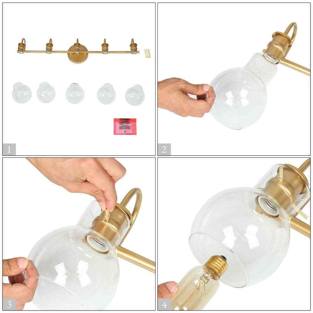 - Bulb requirements: this light gold finish vanity light uses 5 x E26 base max 60-watt bulbs (not included), LED bulbs are compatible