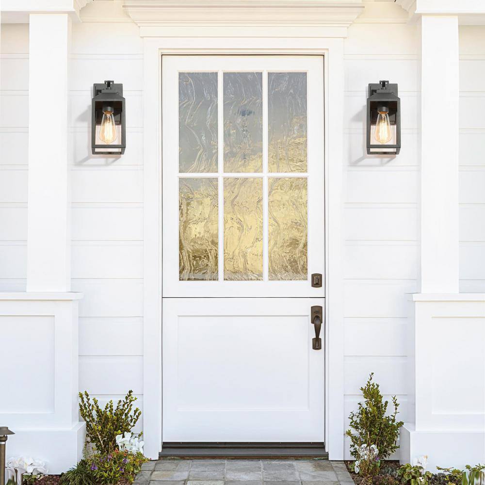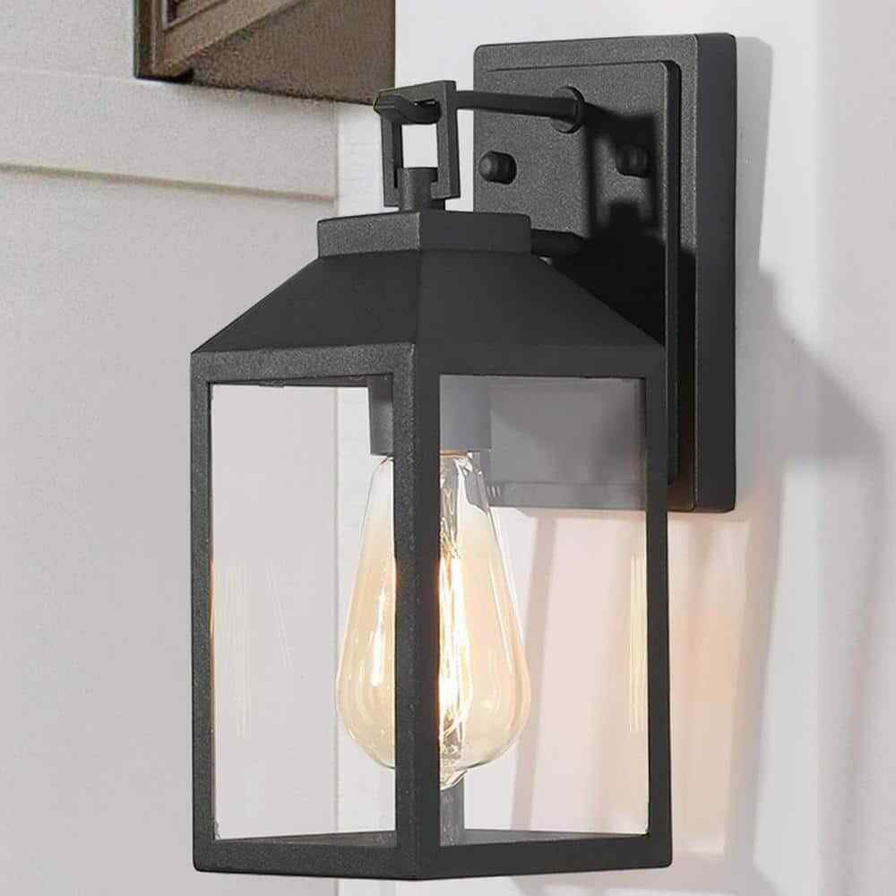 Enliven your space by adding this Industrial Textured Black Outdoor Lantern Sconce with Clear Glass Shade, 1-Light Exterior Wall Light for Garage Porch. You can pair this with a variety of design schemes. This is a durable option for your home. The black finish easily complements your existing decor.- The textured black wall lamp with clear glass lampshade based on the industrial design style makes it perfectly decorate your outdoor landscape