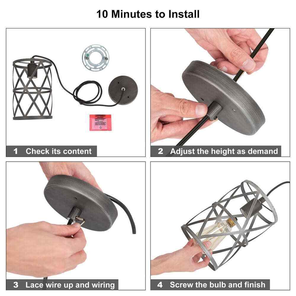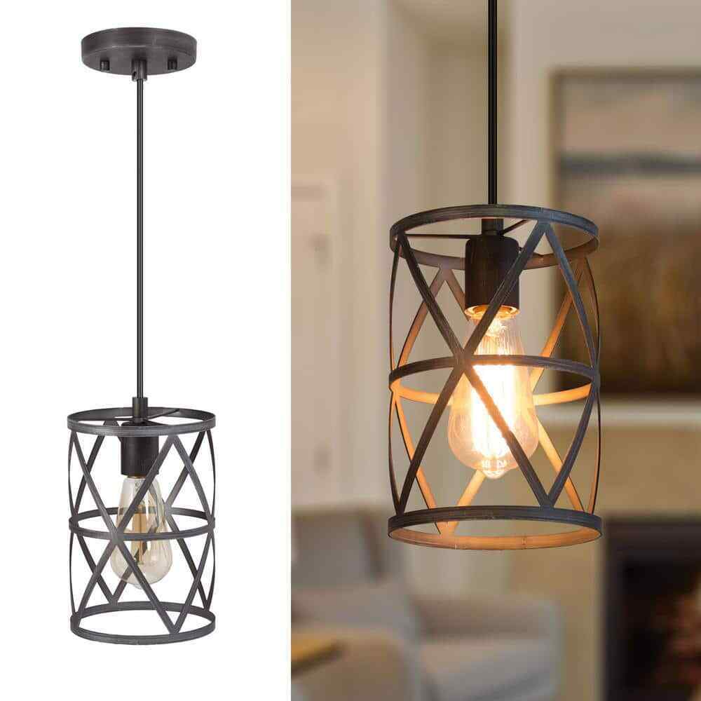 Update a room in your home with the modern industrial style of this newly updated LNC Gulliver 1-Light Modern Industrial Pendant Dark Gray Geometric Drum Cage Mini Pendant Light. The geometric open iron-made cage adds a breezy touch to any space while its hand-brushed antique gray pairs perfectly with the wire and wall decor. With the classic X-shaped accents, this on-trend single-light mini pendant modernizes the traditional classic decor. A great addition to the bar, entryway, hallway, stairway, and storage. Define your lighting ideals as you like. Mini pendants are a quick and easy fashion upgrade to refresh your residential or commercial decor.- Durability: Crafted of sturdy metal construction, providing extra durability and strength