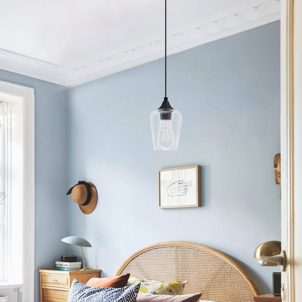 This industrial glass pendant light is crafted to enhance the natural beauty of any rooms. The rounded glass shade design creates a subtle accent that can fit any bedroom, bathroom, hallway, kitchen or even a coffee shop. The clear shade enhanced the dark metal accents and allows you to insert a unique bulb that fits your style. These dynamic fixtures can be hung alone, stagger or lined up for desired light and design.- Simple translucent design will add a warm elegant flare to any living space