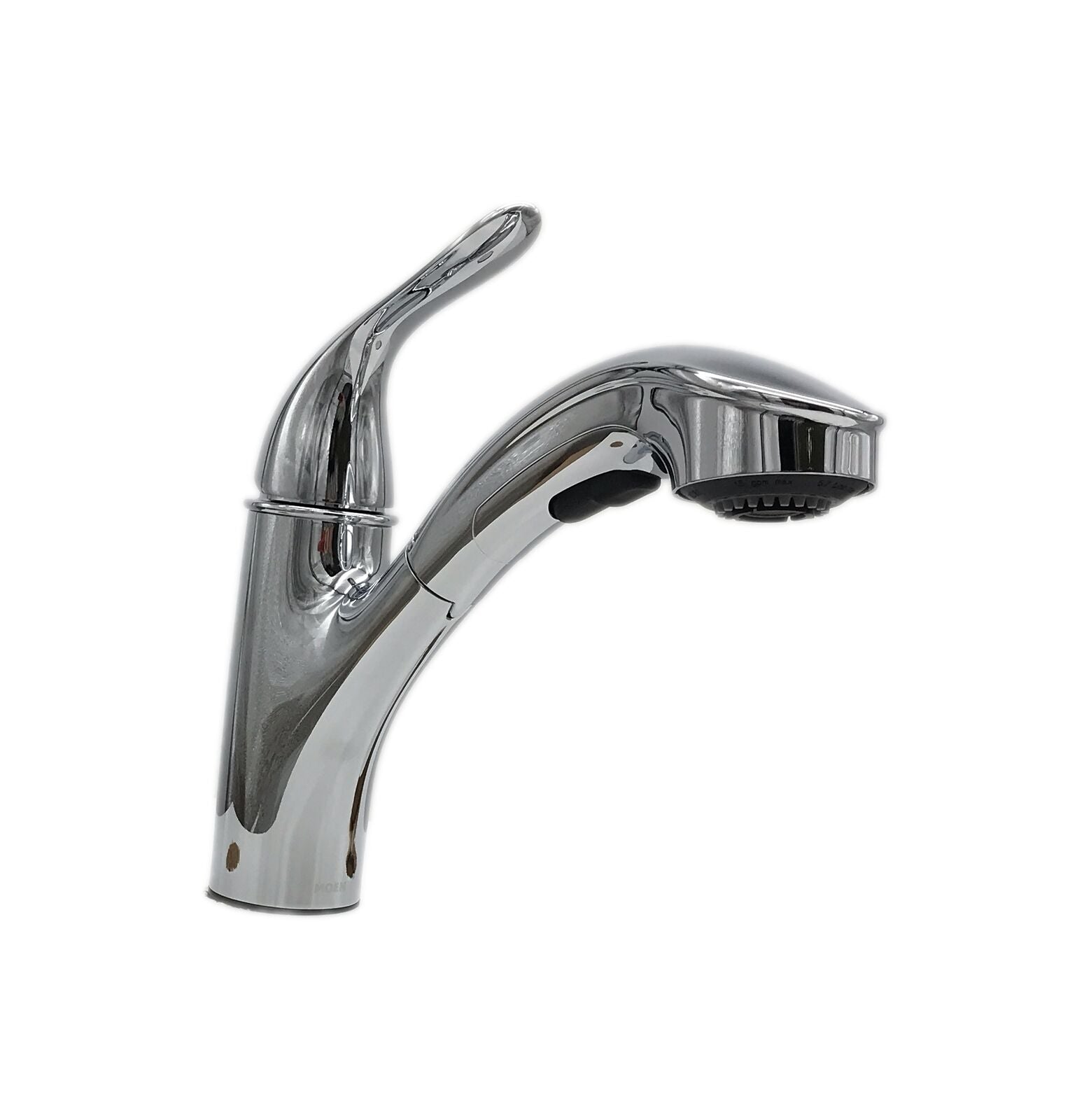 - Low-arc spout offers a compact design