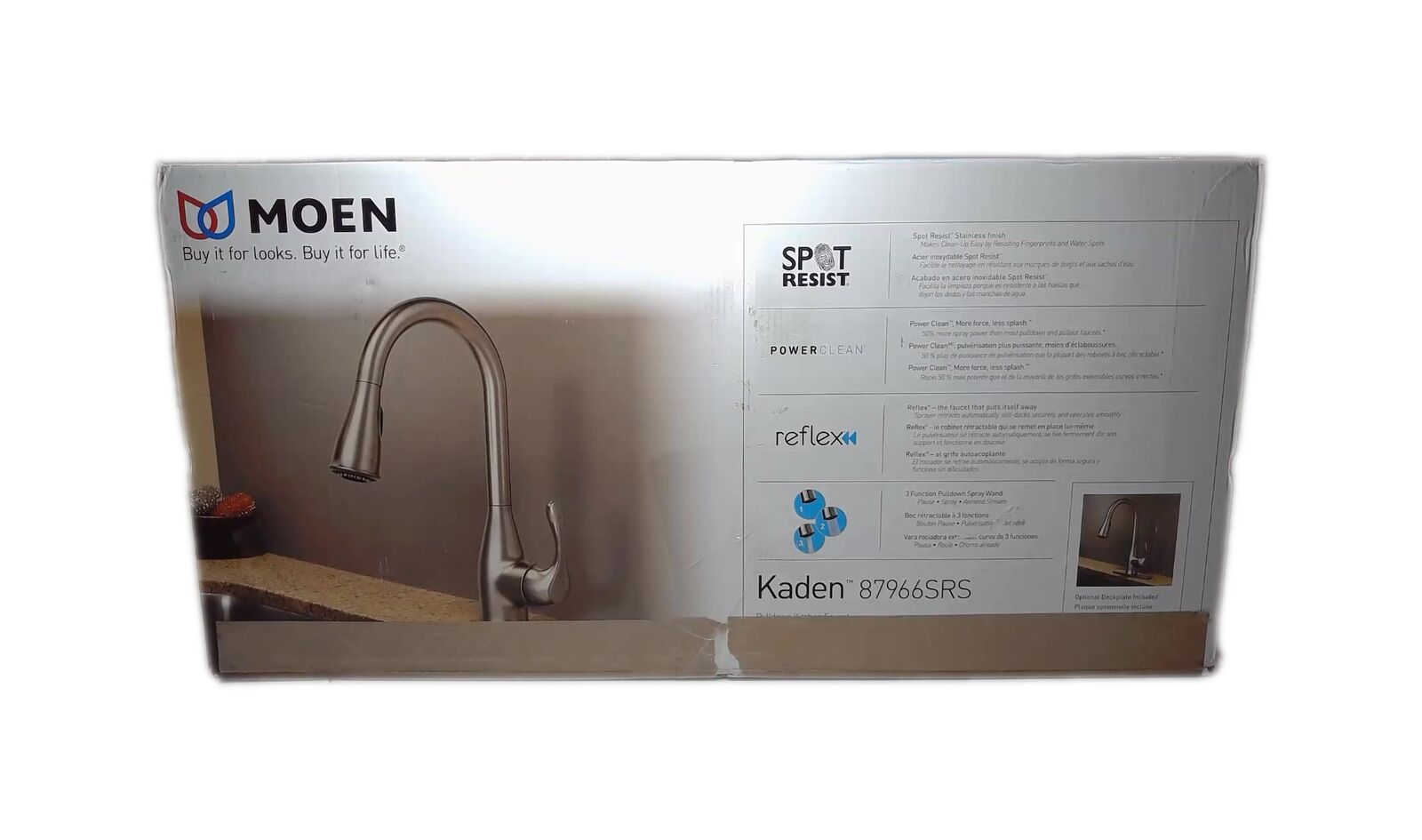 Inspired by soft curves and crisp edges found in nature, the Kaden Pull-Down Sprayer Kitchen Faucet infuses versatile, transitional styling into any kitchen. Showcasing MOEN's top innovative features, Kaden utilizes Reflex technology, engineered specifically for pull-out and pull-down movement by undocking easily, moving with you and retracting effortlessly when you're done. The Reflex system was developed in a kitchen just like yours, by observing peoples' routines to create an effortless experience that simplifies daily tasks. Also designed with Powerclean technology that delivers 50% more spray power, Kaden ensures efficient washing with less effort. Even more, MOEN's exclusive Spot Resist finish resists fingerprints and water spots to maintain its original brilliance and easily wipes clean, ensuring the beautiful stainless appearance will continue to shine over time.- Power clean spray technology provides 50% more spray power versus most MOEN pulldown and pullout faucets without the power clean technology