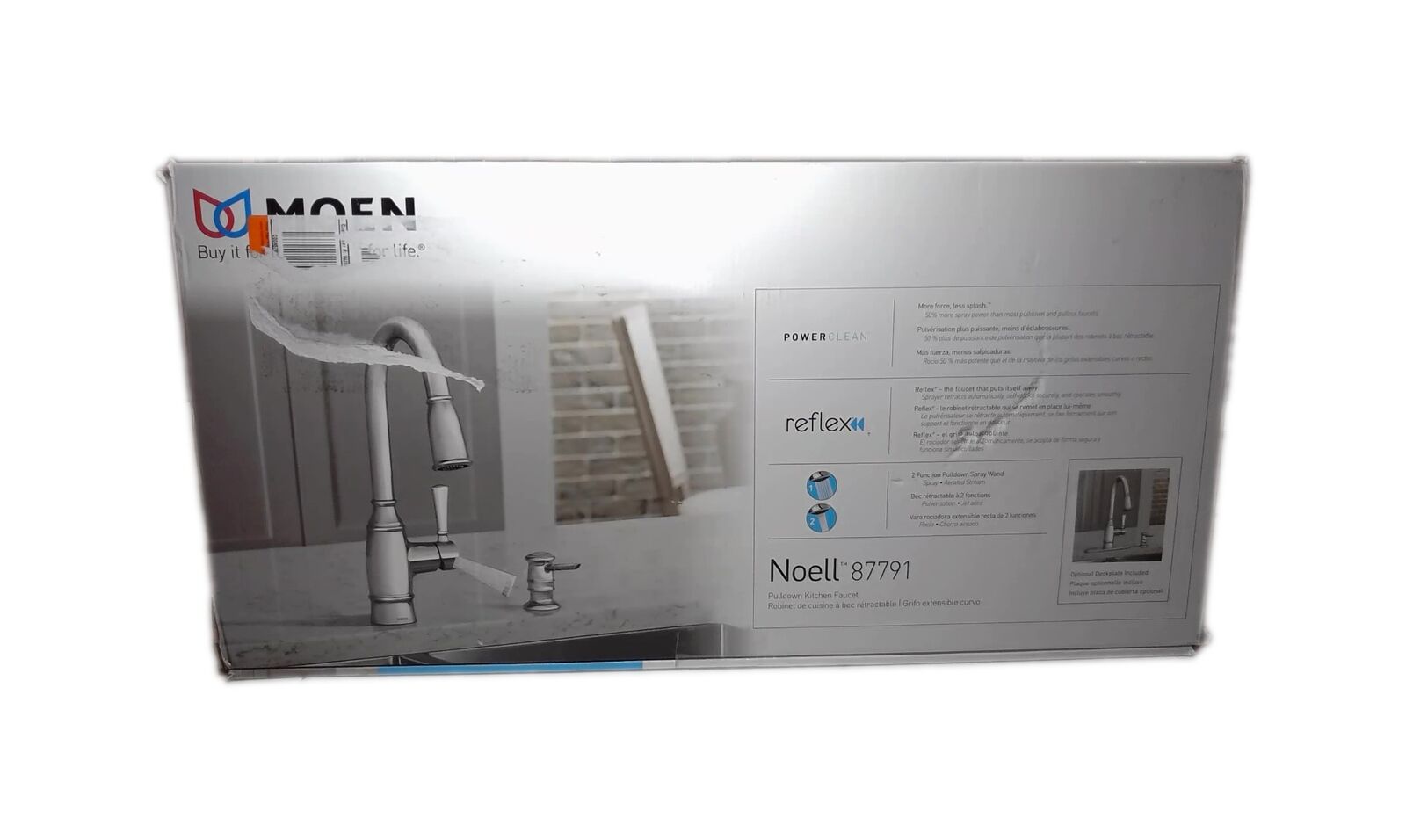 The MOEN Noell 1-Handle Pull-Down Sprayer Kitchen Faucet was designed with attention to detail. The Noell collection embodies elaborate traditional designs to enhance the style and design of any home. This faucet has a convenient pull-down sprayer and swivel spout that enables you to reach every corner of your sink. Reflex system for smooth operation.- Chrome finish creates a bright, metallic look that is highly reflective and coordinates with any decor style