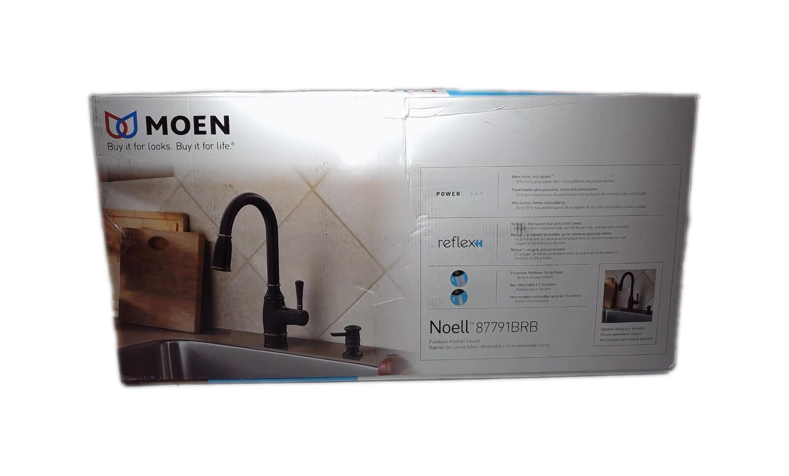 The MOEN Noell 1-Handle Pull-Down Sprayer Kitchen Faucet was designed with attention to detail. The Noell collection embodies elaborate traditional designs to enhance the style and design of any home. This faucet has a convenient pull-down sprayer and swivel spout that enables you to reach every corner of your sink. Reflex system for smooth operation.- Power Clean spray technology provides 50% more spray power versus most MOEN pulldown and pullout faucets without the Power Clean technology
