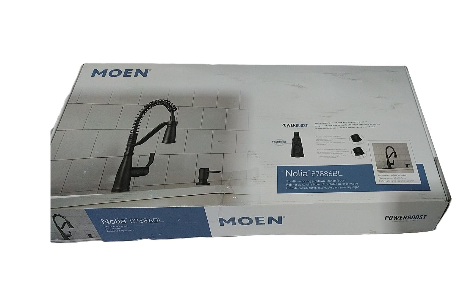 The Nolia Pre-Rinse Spring kitchen sink faucet offers a fresh take on industrial farmhouse design with the enhanced functionality of a spring faucet. The Nolia collection features a classic look that works well with a variety of traditional and transitional kitchen decor preferences. Now with a lower profile, this Spring Galley kitchen faucet provides the convenience of a traditional spring faucet while maintaining a compact design for smaller sink spaces. Available in MOEN Matte Black finish to add a dramatic and bold look to your kitchen.- Matte black finish is the perfect complement to modern spaces