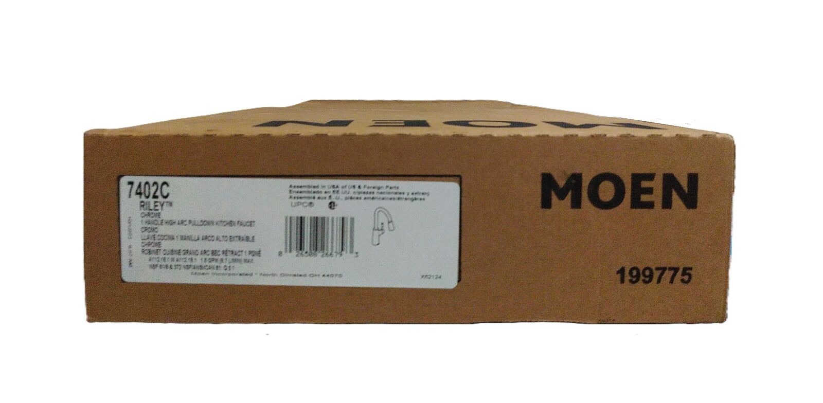 Sleek lines and a clean, conical architecture make the Riley Pulldown Kitchen Faucet a standout in any Modern kitchen. The convenient pulldown spray wand features the MOEN Reflex system for smooth operation and easy maneuverability. Change from a standard aerated flow to Power Boost mode for a faster clean with the push of a button on the spray head. The MOEN Riley Pulldown Kitchen Faucet can be installed in sinks with 1 or 3-holes. The standard kitchen faucet design easily installs on a sink or countertop with the MOEN Duralock quick-connect system. It comes with an optional Escutcheon (Deck Plate).- Chrome finish is highly reflective for a mirror-like look that works with any decorating style