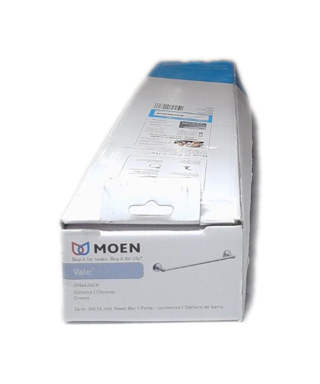 The MOEN Vale 24 in. Towel Bar in Chrome offers an appealing, transitional design with an attractive chrome finish. It comes with mounting brackets, an installation template and hardware included.- Chrome finish is highly reflective for a mirror-like look that works with any decorating style