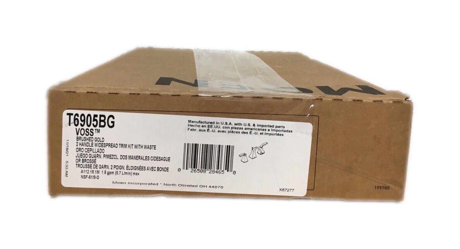 Boasting defined edges and understated elegance, the MOEN Voss 8 in. Widespread 2-Handle High-Arc Bathroom Faucet Trim Kit offers an ageless, yet fashion-forward presence that will illuminate your bathroom space. Offering a brushed gold finish that offers an elegant, sophisticated look, each silhouette brings a confident transitional style to the bath. A full line of coordinating Voss bath accessories are available to complete your look. This trim kit requires MOEN 9000 valve to complete installation.- Required valve not included; click below to view and purchase compatible MOEN valve model(s):