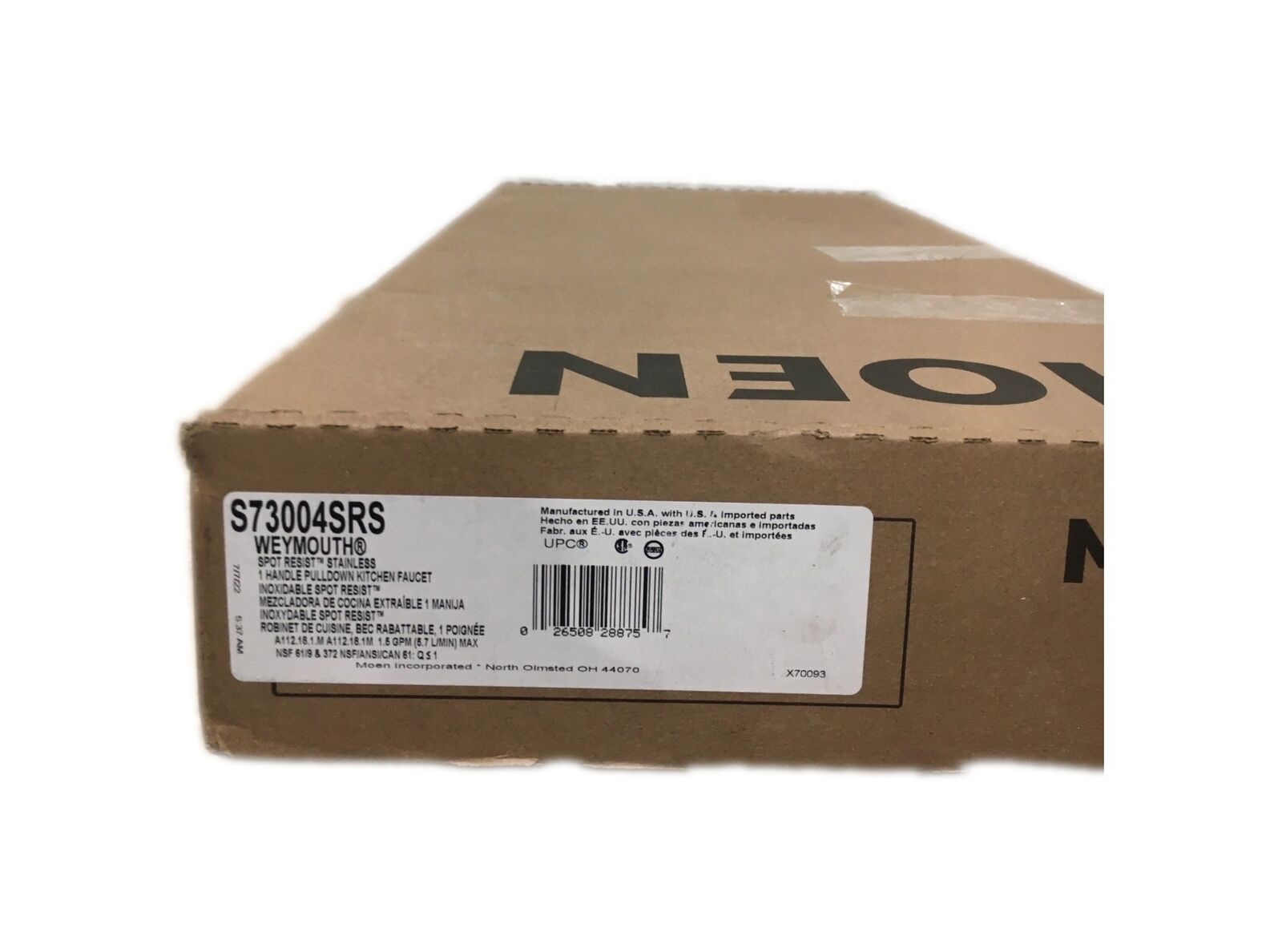 Timeless and full of charm, the traditional Weymouth pulldown kitchen faucet embodies the fresh farmhouse look consumers desire. Its distinctive accents include a refined shepherd's hook spout and porcelain inlays with antiqued decorative script both in English and French to provide the ultimate in customization. The faucet features MOEN's Power Boost technology, which provides a faster clean and a faster fill with the push of a button, as well as the Reflex system to ensure smooth operation and secure docking of the spray wand. Available in MOEN's exclusive Spot Resist Stainless finish, which resists fingerprints and water spots to maintain the brilliance of the fixture.- Faucet pulldown hose offers flexible water delivery and hose retracts with ease