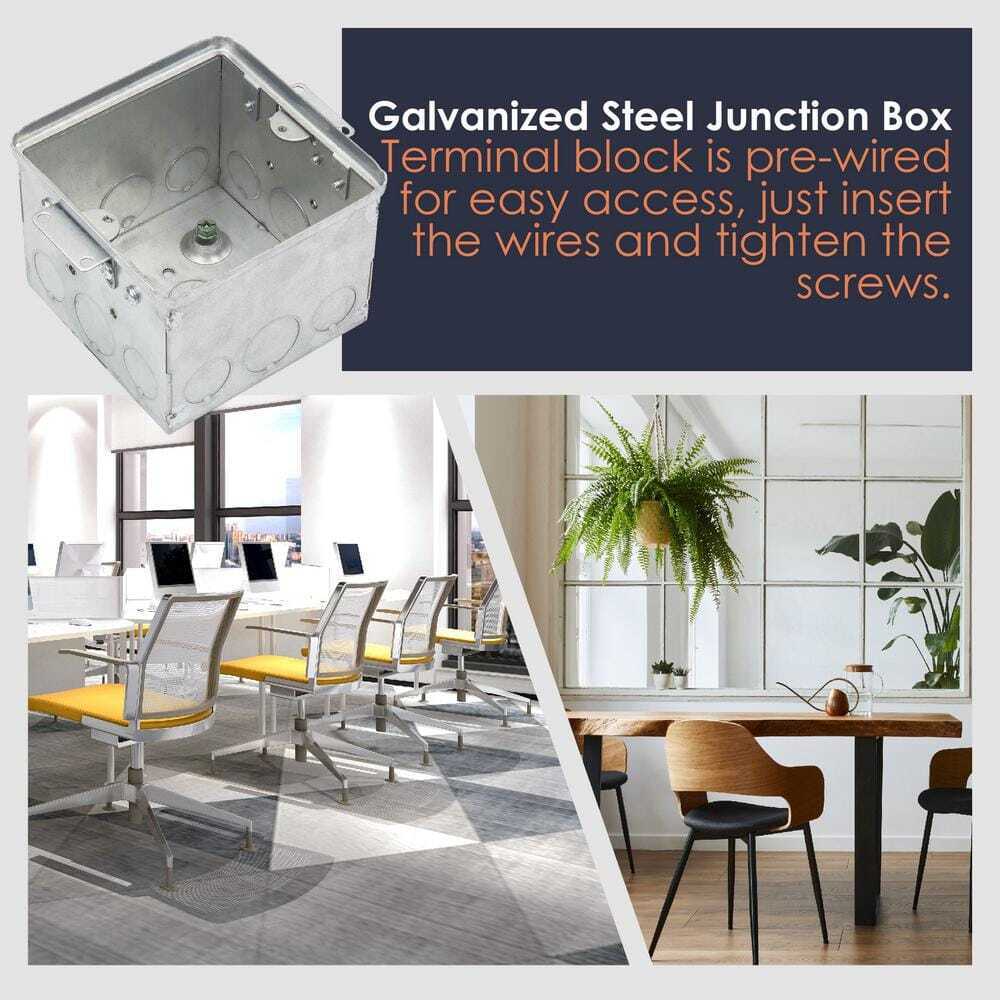 - Galvanized steel junction box with 1/2" and 3/4" knockouts