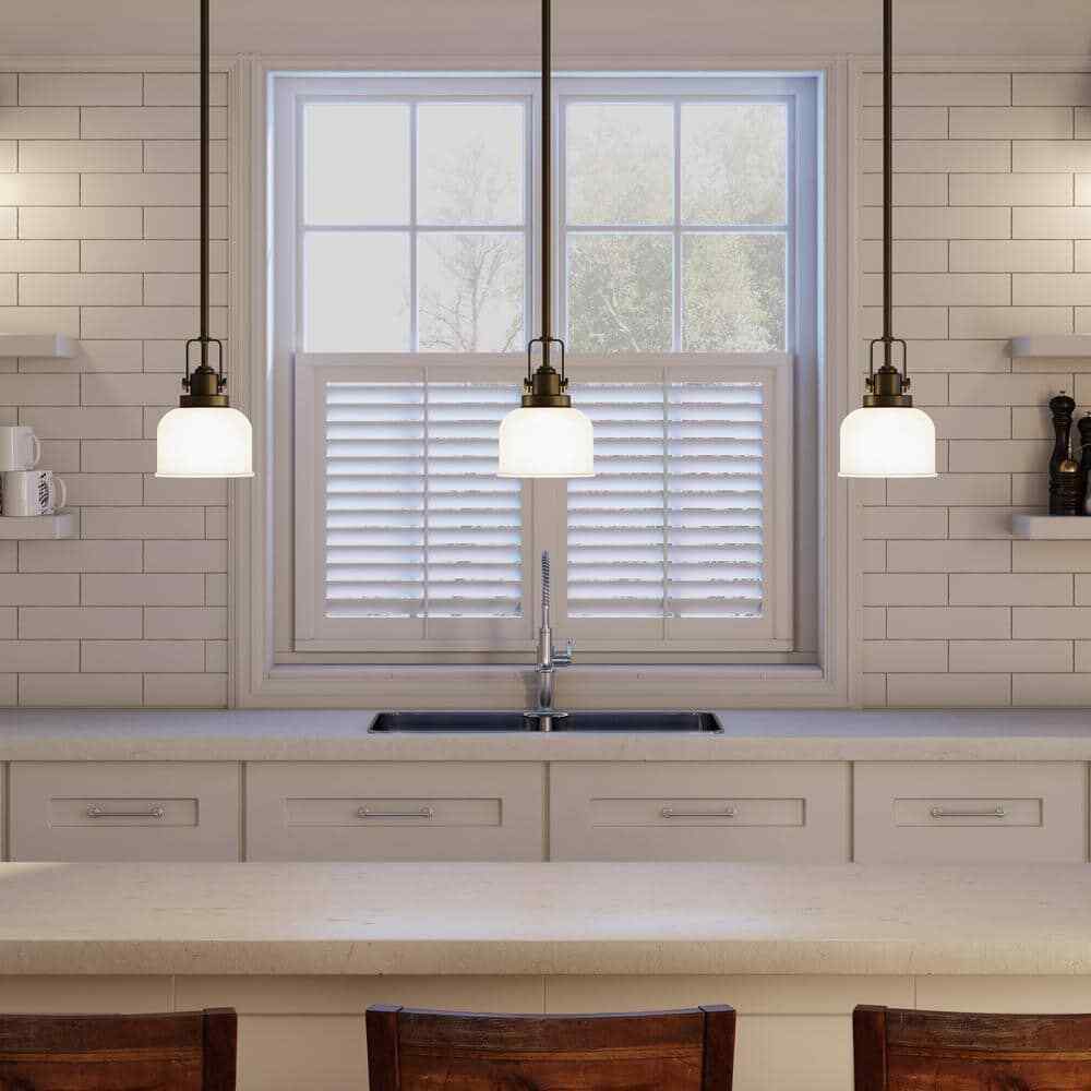 Archie is a standout in any room and provides a fun and functional way to light islands, bars or dining areas and can be used individually or in groups of 2 or 3 to add style to any space. The authentic, prismatic style glass shade diffuses light to provide functional and stylish illumination. Stem-type hanging system provides several options for installation height and includes 6 in. of chain for installation on sloped ceilings.- Venetian bronze finish