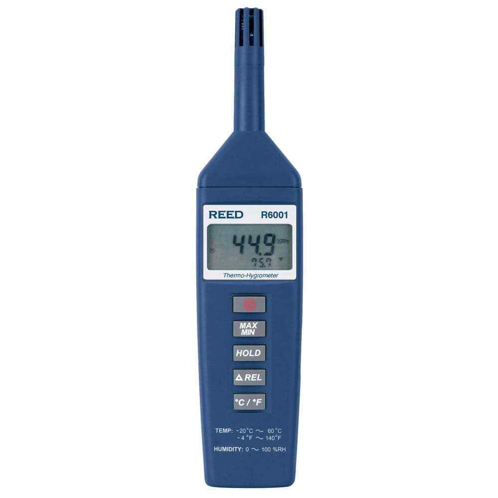 This portable thermo-hygrometer measures and displays ambient temperature and humidity simultaneously. The R6001 features Datahold, Min/Max and Relative functions. Low battery indicator and auto shut-off.- Easy-to-use, intuitive design