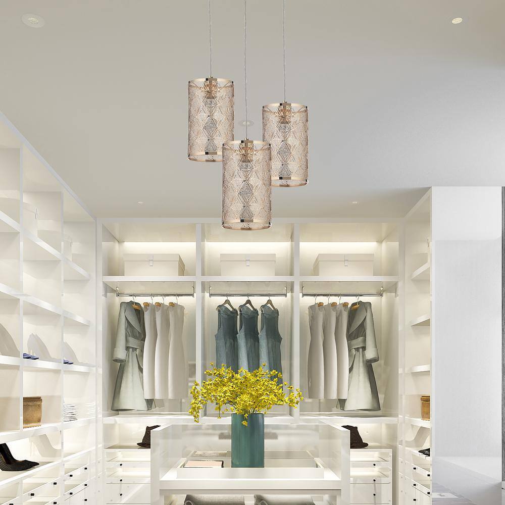 Bring together art deco style and glamorous decor with the Sofia 1-Light Polished Gold Metal Pendant Light. This hanging pendant light features a polished gold metal canopy for a simply sleek look that's matched in elegant style with a cylindrical metal shade. Triangle motifs set in a geometric fashion make up the exquisite look of the shade while adding a touch of extra opulence when the single bulb shines through. The adjustable-height design lets you install this glass and metal hanging light directly into your ceiling at your preferred drop length, so you can easily spruce up any area in your home, from the entryway to the living room to the dining room.- LED, incandescent and CFL compatible