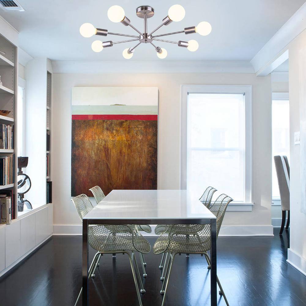 Crafted by excellent designs, this contemporary 8-light sputnik chandelier light fixture is a natural addition to any modern living space. Finishes with the nickel add an updated contemporary look to this versatile sputnik chandelier lighting fixture. Different styles of this modern linear sputnik chandelier lighting enable a choice of diversity when you decide to remodel your space.- All mounting hardware is included for easy and quick installation