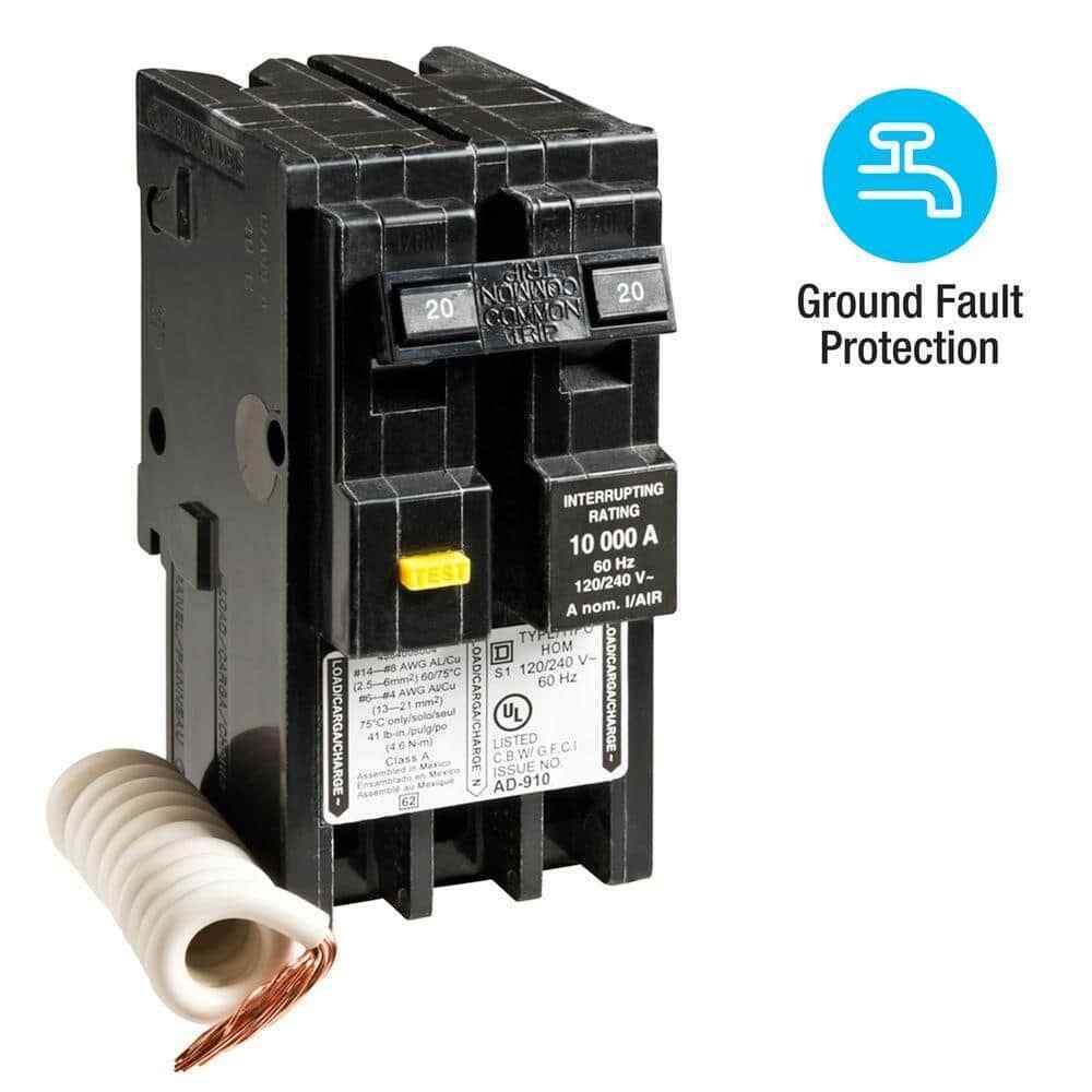 - Square D Homeline 20 Amp two-pole GFCI circuit breaker