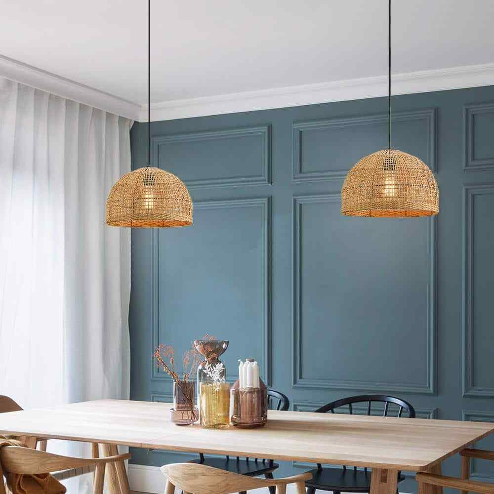 Coastal-inspired pendant features black canopy and woven cage shade which is crafted of hand-woven rattan/bamboo. It's an unique blend of eclectic nautical and rustic vintage style. Filtering the light from within, each piece creates a play of light and subtle shadow in a room, adding an inviting ambience. This collection can work with a variety of boho decors and even work in homes with coastal or farmhouse styling, which is an ideal selection for over your kitchen island, hall way, foyer or suspended above your kitchen breakfast bar, dinning room table or bedrooms of any kind.- UL dry location Listed for indoor use only