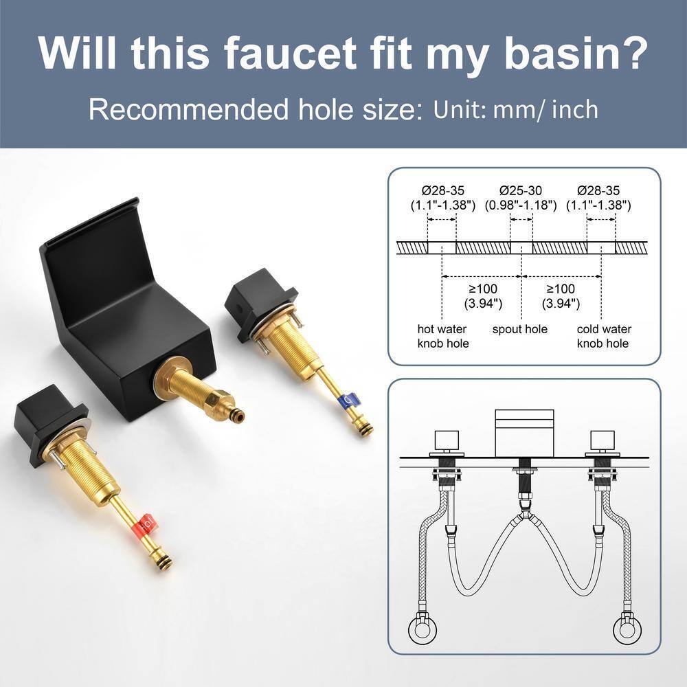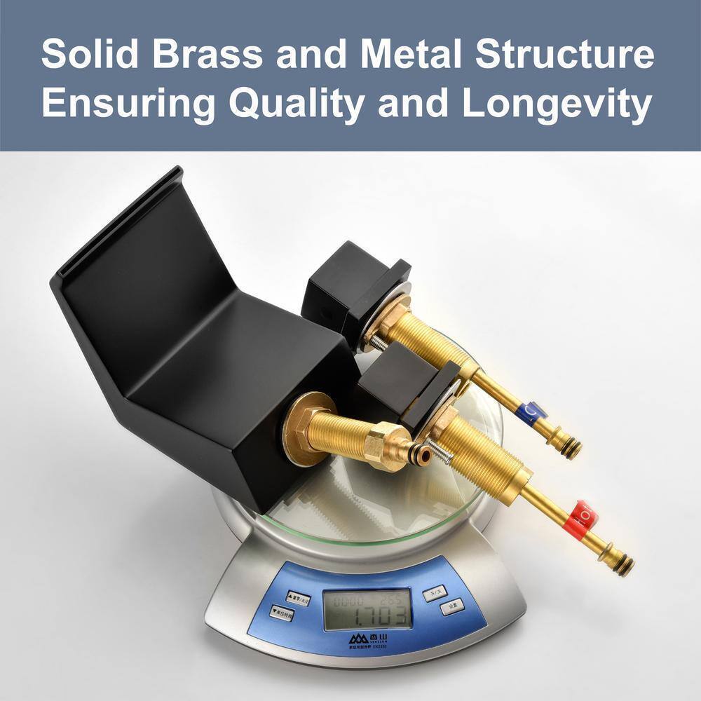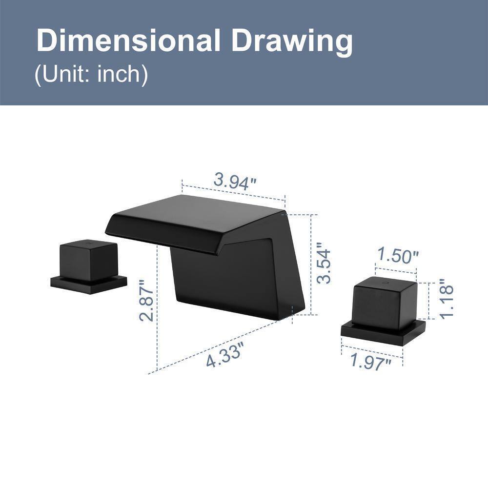 Trendy rectangular design 8 in. widespread bathroom faucet: the slope waterfall design to bring a new experience to the families who use the basin. Simple and versatile shape is suitable for different styles of bathrooms. In high quality solid brass, resists water spots and fingerprints, can always keep your bathroom faucet shining. Ideal for more spacious bathrooms, widespread faucets are more spread apart and feature a 3-hole installation. The double handle design allows you to control the water flow and temperature as you wish and enjoy your time in the bathroom.- All solid brass and SUS304 stainless steel structure ensure quality and longevity