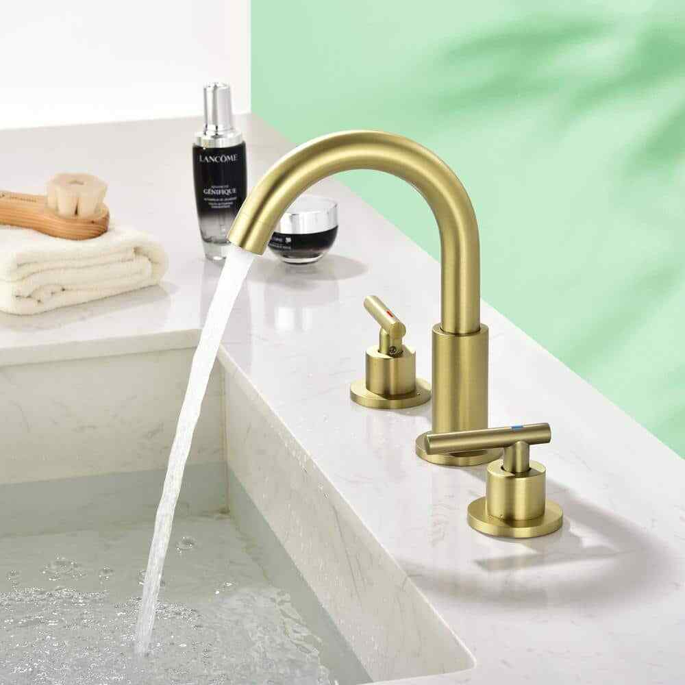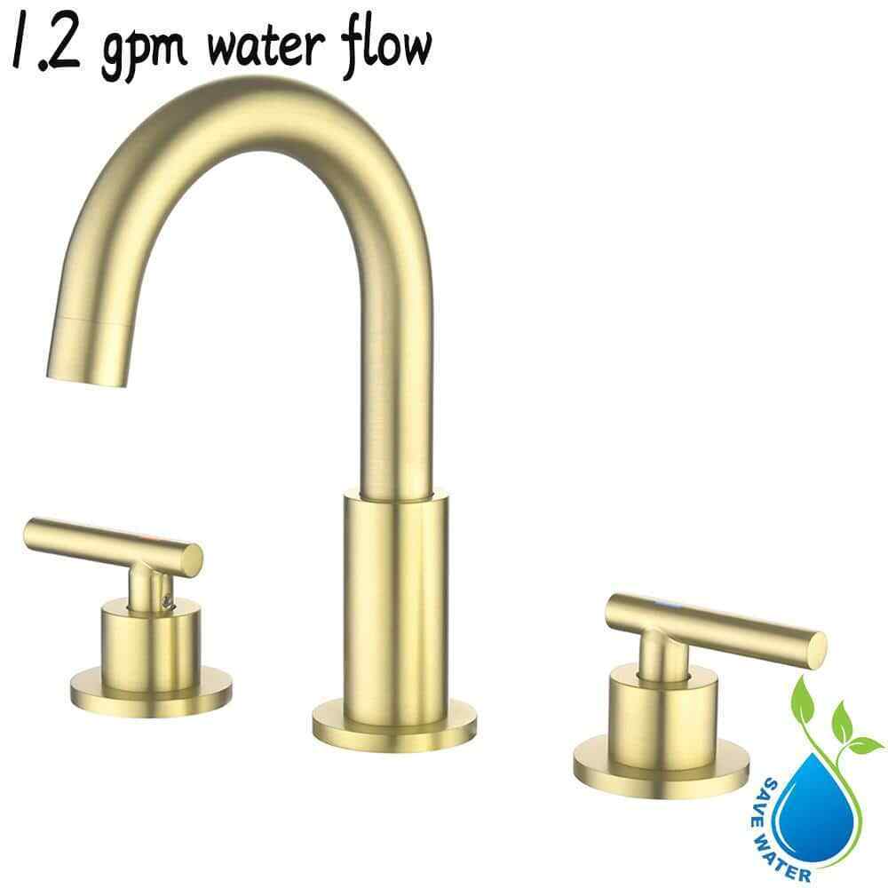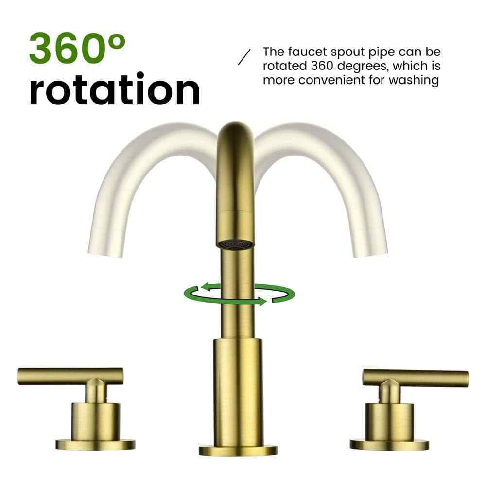 8 INCHES WIDESPREAD RORATED HIGH ARC BATHROOM FAUCET in 3-hole mounting, the 8 inches distance is PERFECT for your bathroom. Modern and sleek appearance design and solid brass heavy and durable material and construction for whole faucet, it fits rent house, new condo, single-apartment, motor home, travel trailer and family use very well. Under proper installation, it will work well in your home, or apartment or hotel bathroom for at least three years. Seven-layer plating finish is treated with spot and corrosion resistance. You don't need to worry about its finish peeling off and difficulties of cleaning. Double knob handles with ceramic valve, you can use more than 500,000 times, and it still be smooth as the new one, and no leaking problem! You also could find installation instruction video from the link that is clearer than manual in package!- [Brass Faucet] The whole faucet spout is constructed from lead-free solid brass for durability, at least 3 yrs lifetime and healthy using for your family