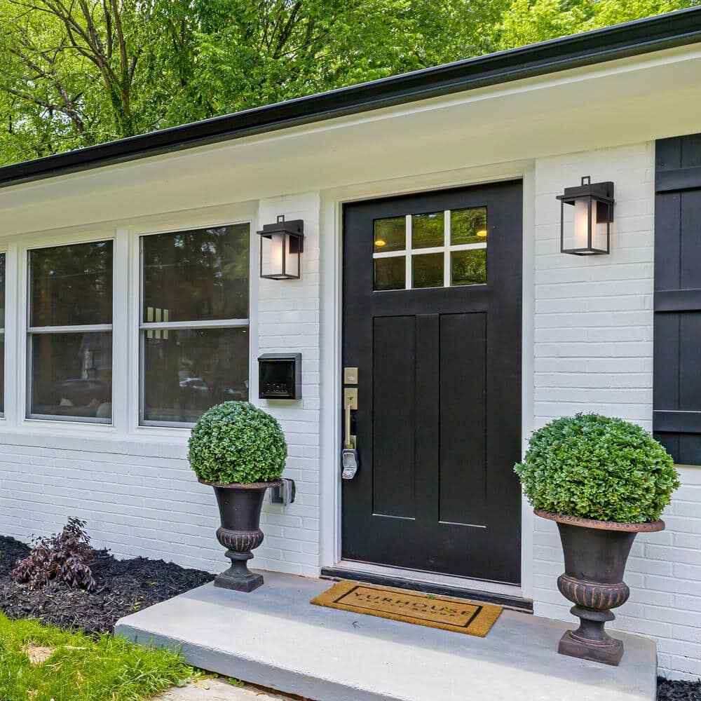 This Matte Black Lantern Outdoor Lantern Wall Sconce Light Idea by Uolfin Lighting uses an open geometric frame design with a frosted glass shade, which perfectly blends industrial, modern, transitional, and farmhouse styles. The simple square metal frame firmly fixed the frosted glass shade, and it can match all kinds of houses. If you install these classic black outdoor lights around the house, the gentle light through the frosted glass will make your whole house surrounded by warmth. The maximum brightness of 60-Watts is enough to light up the road ahead. The black outdoor wall sconce can not only be matched in pairs to guard your door but also can be installed around the wall to light up the outline of your entire house. Garages, barns, basements, or corridors, patio, etc. can be installed with the black outdoor wall light fixture to light them. In addition to the lighting function, it will also be a highlight of your exterior wall.- MODERN MINIMALIST OUTDOOR WALL LIGHT: The classic shape design perfectly matches the shape of your house, the frosted glass shade brings you a unique experience of the warm light effect