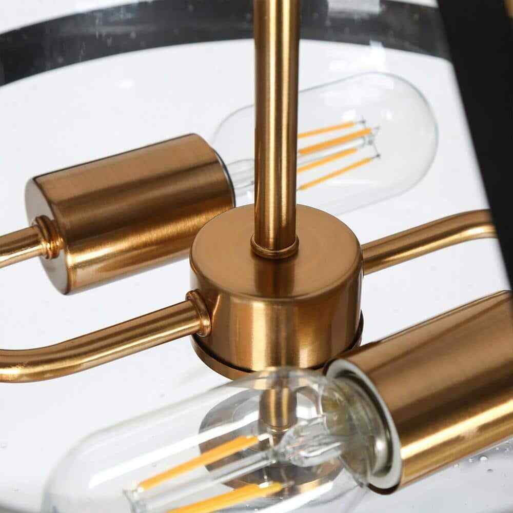 Benefiting from its drum shape and color combination this Black Modern Transitional Semi-flush Mount Light with Seeded Glass Shade features modern, minimalist, and industrial styles. Its thick drum-shaped glass shade not only makes the light less harsh but also creates the visual effect of water droplets on the walls and ceiling when the lights are on. Mixing modern and industrial styles, the classic black and gold color scheme is a great choice for hanging in hallways, kitchens, bedrooms, living rooms, etc.- SEEDED GLASS SHADE: Seeded glass is a good option for you because the mouth-blown seeded glass is not only of high-quality but also can match the light to project different patterns on the wall, adding a unique charm to your private space
