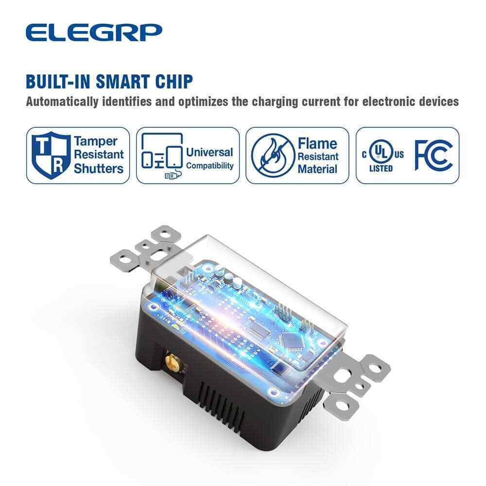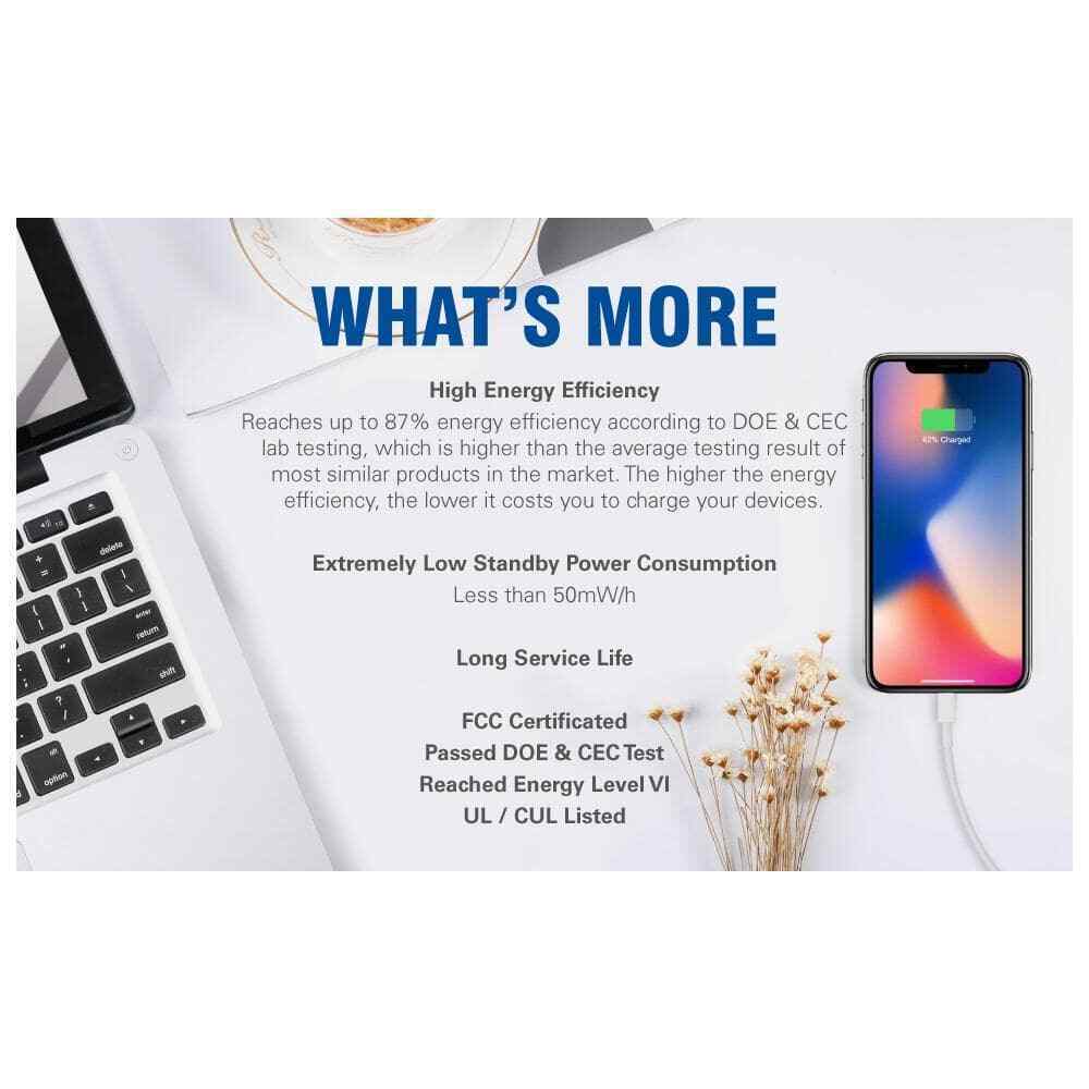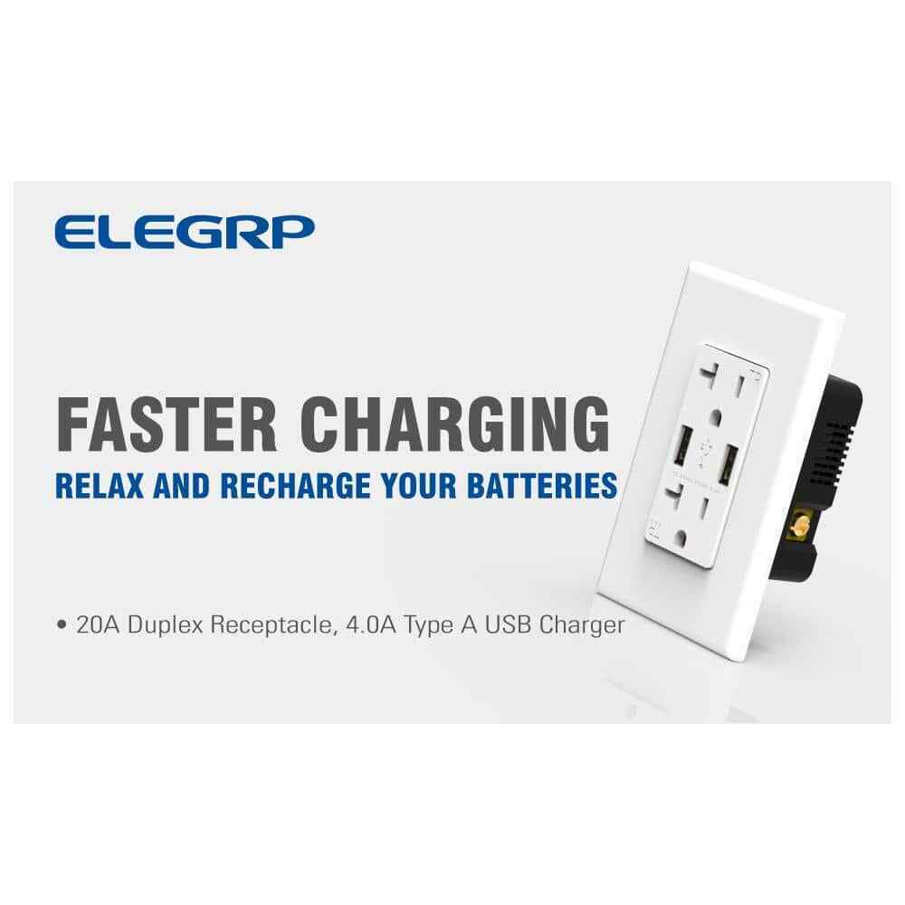 Our USB receptacles feature a smart chip that recognizes and optimizes the charging power of your electronic devices for fast and efficient charging of tablets, phones, gaming devices, e-readers and a host of other electronic devices. Reaches up to 87% energy efficiency according to DOE and CEC lab testing, which is higher than the average testing result of most similar products in the market. The higher the energy efficiency, the lower it costs you to charge your devices. Circuit Compensation Function ensures constant charging-Voltage and current of USB port to reduce battery loss of your devices.- High-Speed Charging Tech - in-wall duplex receptacles with two USB outlets with a total output of 4.0 Amp (2.0A standalone), 5V DC