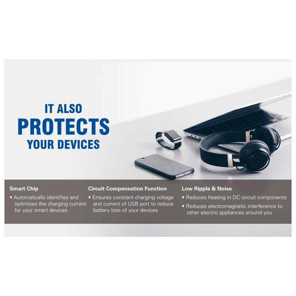 - Circuit compensation function - ensures constant charging voltage and current of USB port to reduce battery loss of your devices