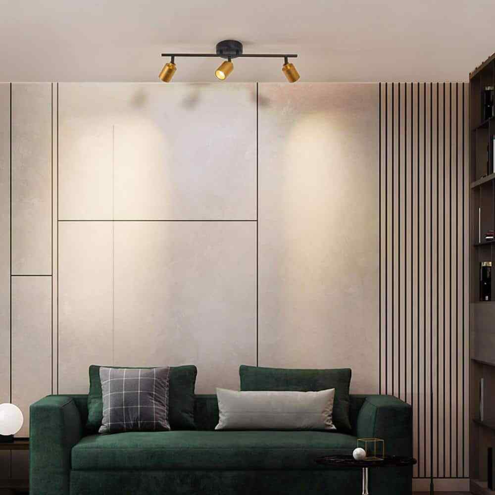 VidaLite LED track lighting is not only able to illuminate your room but it is also created to save money. Crafted from aluminum and iron, it is sturdy and eye catching. It features 3 spot light heads hanging from fixed rail and each spotlight is brushed black on the exterior, with a gold interior and inset LED light. The lights are situated on a fixed track and each head is individually adjustable in any direction to ensure you have light where it is needed most. Each LED light has 50,000-hours of maintenance free runtime so you can enjoy the light without worry of needing to change the bulb.- Interior track light: this fixed rail track light features three rotating spot lights dropping down from a black aluminum track the interior of each head is accented by brushed gold for modern look