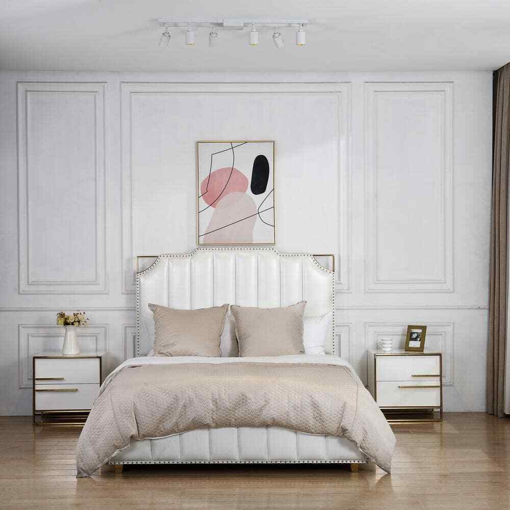 Vidalite LED Track Light is not only able to illuminate your room but it is also created to save money. Crafted from aluminum and iron, it is sturdy and eye catching. It features 6 dimmable spot light heads, each spotlight is brushed white on the exterior, with a gold interior and inset LED light. The lights are situated on a square track and each head is individually adjustable in any direction to ensure you have light where it is needed most. Each LED light has 50,000-hours of maintenance free runtime so you can enjoy the light without worry of needing to change the bulb.- Interior track light: this dimmable track light features 4 rotating spot lights, the lens cap of each head is accented by brushed gold for modern look