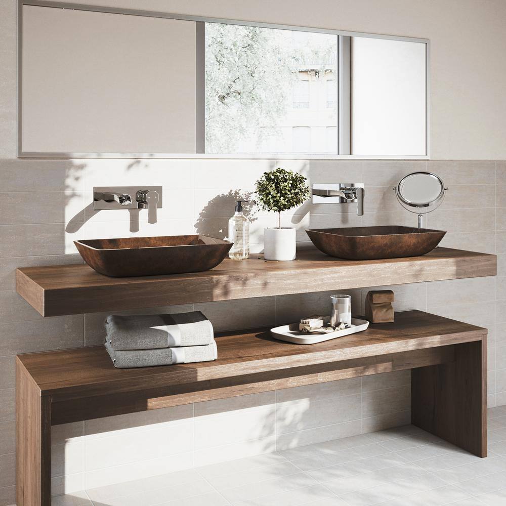 Follow the steady stream of perfection that is guided by the VIGO Cornelius Wall Mount Bathroom Faucet. A trough-style spout encourages an almost waterfall-like effect as water cascades into the vessel sink beneath this beauty. The Cornelius has just one lever to control both the water and temperature, making use quite simple. Plated in a 7-layer coated finish, this faucet is an all-around work of art.- PERFORMANCE SPOUT TM: eco-friendly spout conserves water by 40% and reduces your water bill without sacrificing water pressure