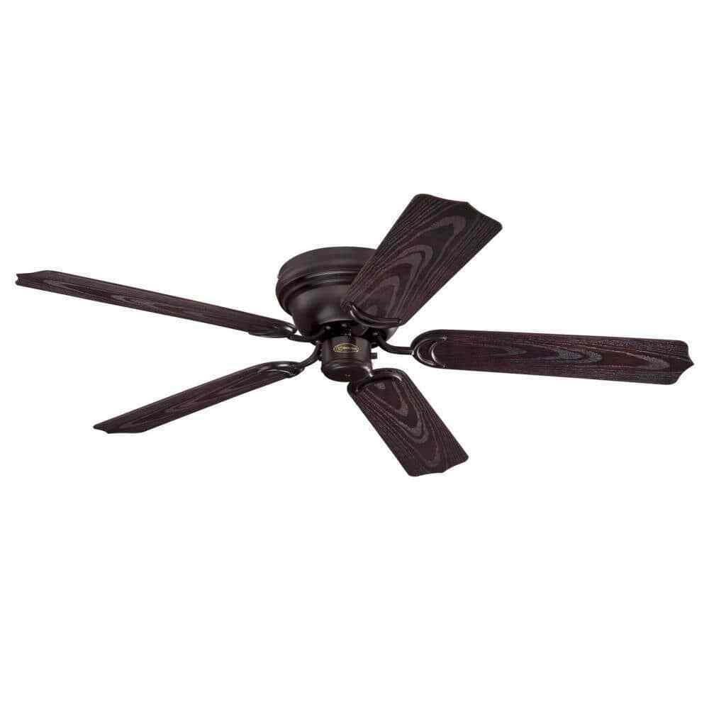 Enjoy comfortable breezes on the porch with the Westinghouse Contemporary ceiling fan. Durable enough to withstand the elements, this indoor/outdoor fan is richly finished in oil rubbed bronze with dark walnut, weatherproof blades. The traditional style blends well with any decor, and the flush mount motor housing is ideal for installation on low ceilings. Westinghouse is a trusted, global brand. Westinghouse knows lighting and offers products with exceptional quality, reliability and functionality.- 5 dark walnut weatherproof blades